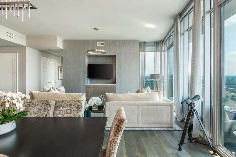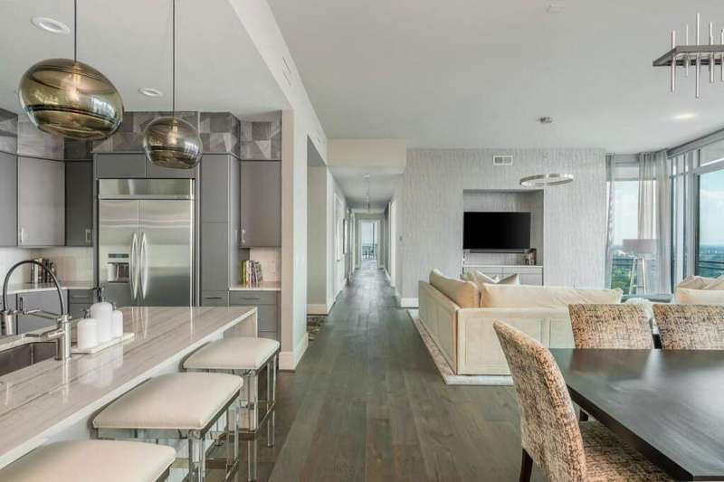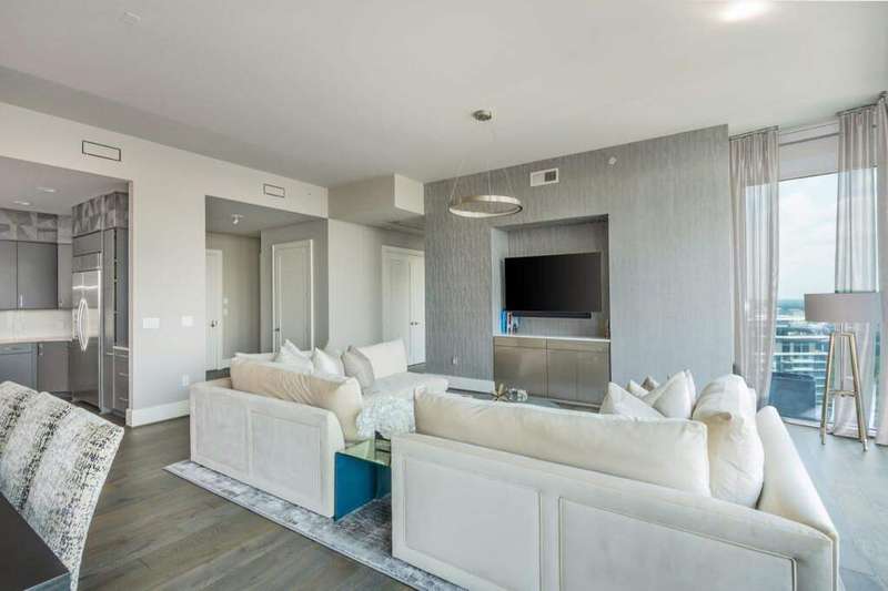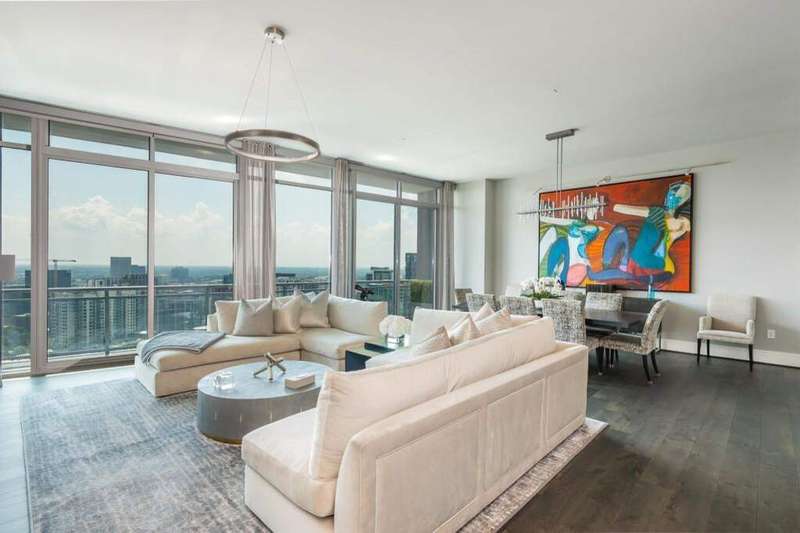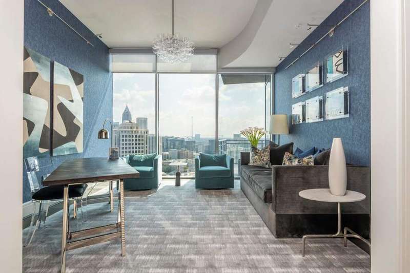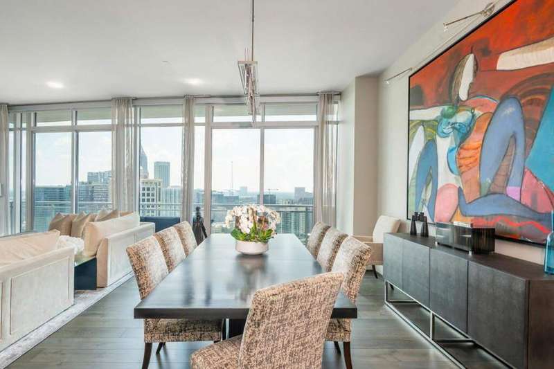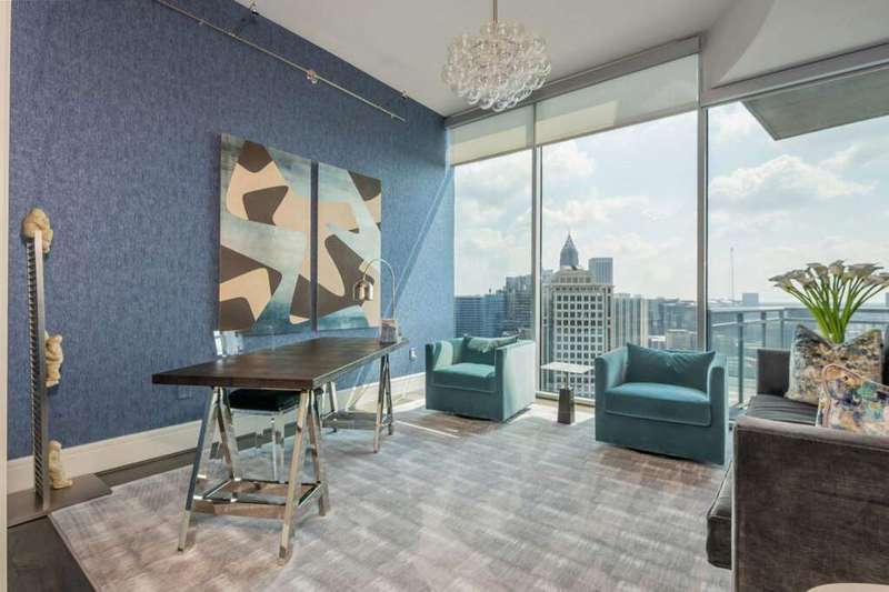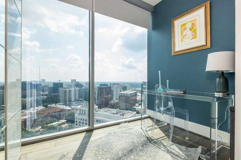 Step into sophistication with this extraordinary 3-bedroom plus office, 3.5-bathroom penthouse, perfectly positioned in the heart of Midtown Atlanta. Offered fully furnished, this residence combines modern elegance with the ease of turnkey living. Walls of floor-to-ceiling glass frame sweeping skyline views, filling the open-concept living and dining spaces with natural light by day and a glittering cityscape by night. The chef's kitchen is outfitted with premium appliances, sleek cabinetry, and a generous island for casual dining or entertaining. A private office offers the perfect space for working or creating from home. Each bedroom is thoughtfully designed as a private retreat with en-suite bathrooms, while the primary suite features a spa-inspired bath and custom walk-in closet. Multiple balconies extend the living space outdoors, creating seamless flow between indoor comfort and fresh-air city views. Residents of this exclusive building enjoy access to world-class amenities including a rooftop pool, state-of-the-art fitness center, and full-service concierge. With Piedmont Park, acclaimed dining, and cultural destinations just steps away, this penthouse delivers a lifestyle of refined luxury and unmatched convenience.