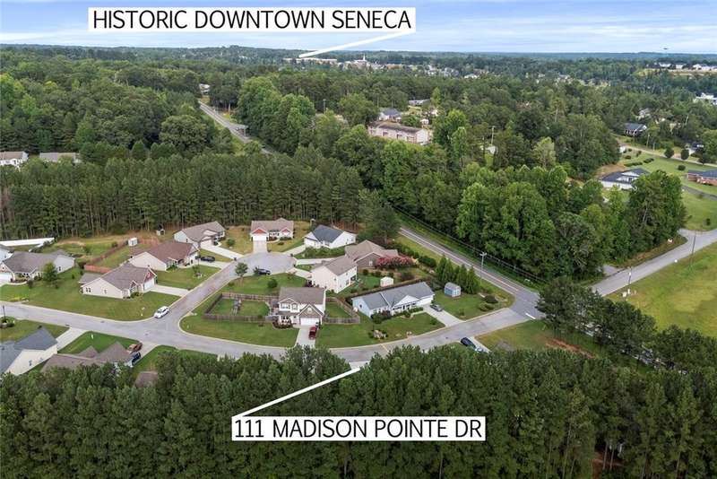 Price improvement and move in ready. Welcome to 111 Madison Pointe Dr., Seneca, SC. Enjoy one level living in this beautifully maintained home crafted in the poplar Craftsman style and nestled in the tranquil Madison Pointe subdivision. Built in 2017, this residence offers over 1800 sq ft of thoughtfully designed living space and sits on a level corner lot. This home was designed for 4 bedrooms, but the owner having it built, had the design changed to fit their needs. The 4th bedroom was changed to an office, flex room with double doors, right off the entrance and across from the Dining Room. The Great Room is spacious with cathedral ceilings and corner fireplace with gas logs. Well appointed kitchen with bar seating, stainless appliances, generous cabinetry and a breakfast bar area. Quality upgrades throughout. Tray and cathedral ceilings create architectural interest. Additional highlights include ceiling fans, hardwood flooring, French doors and a walk-in shower in the Primary bath. The split floorplan offers privacy for family members or guest. Private Primary suite complete with a walk-in closet and full en-suite bath. Across the back is a 20 x 12 all season sun room over looking the private, fenced-in back yard, bordered by trees. Attached two car garage with utility sink and cabinets. Laundry room is located between the kitchen and garage. Madison Pointe is an excellent location-minutes from shopping, dining, medical facilities, schools and outdoor recreation. Clemson University just 15 minutes away, highways give quick access to Greenville, Atlanta and Charlotte. Located within minutes of Lake Keowee and Lake Hartwell.