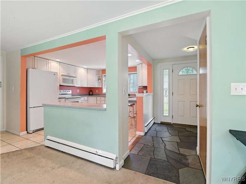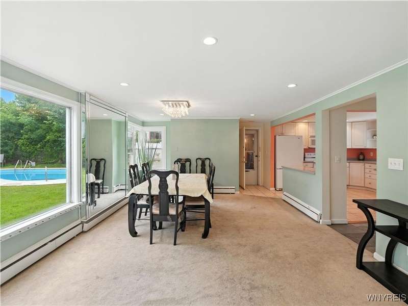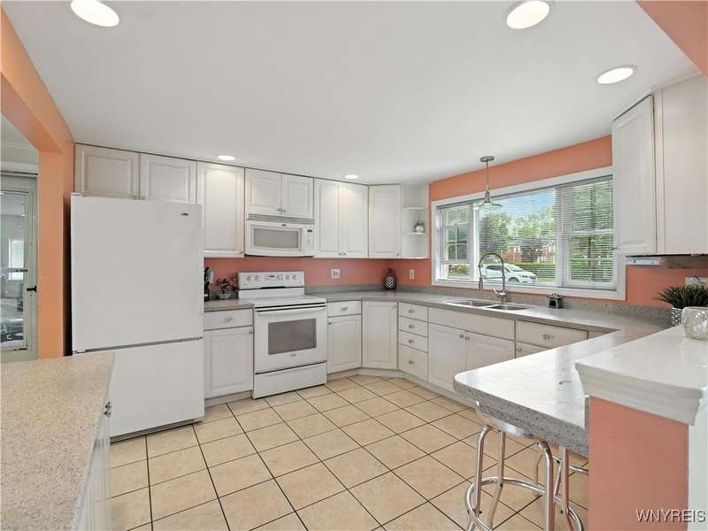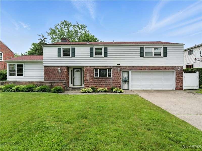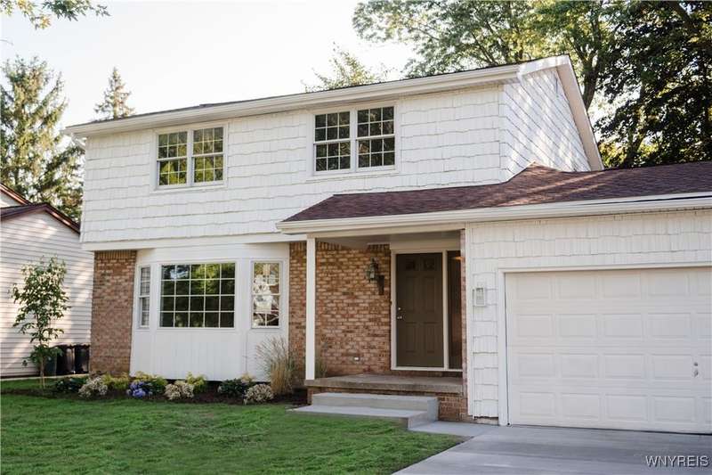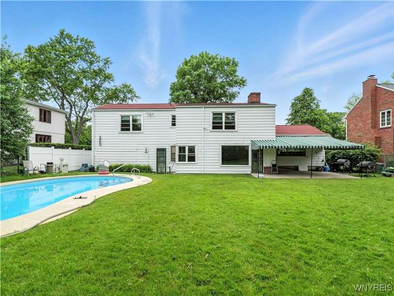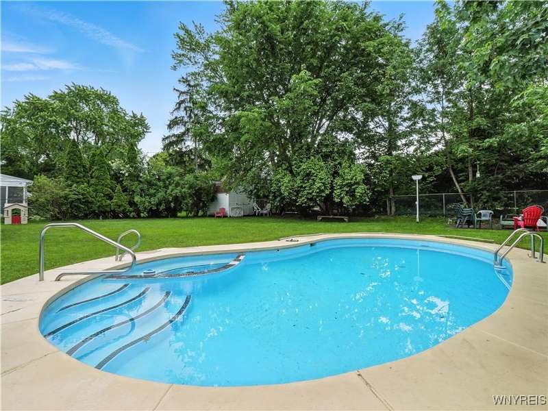 Welcome home to your opportunity to own this 4br, 2.5 bath, 2 car garage in one of the most sought after neighborhoods of 14226! Updates include: tear off arch roof (18) and all windows (15), maintenance free siding, 1st floor is an open concept floor plan that includes kitchen w/heated floors, living room/dining room combo w/backyard entrance to fully fenced yard built for entertaining that includes covered concrete patio w/awning, concrete porch, inground pool and shed, first floor also includes half bath, and bright and airy family room w/tons of natural light w/double sided wood burning fireplace shared w/living room, bonus beautiful oak floors hidden for 20 years under fam room and all bedrooms! Generous sized bedrooms on second floor, 2 sharing jack and Jill setup w/full bath and primary bedroom w/full bath as well! Bonus duct work plumbed for adding AC already to existing radiant heat for multi zoned HVAC, amazing location, dry basement, must see!