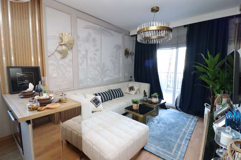 In the project, 1-bedroom ground floor, 1-bedroom middle-floor, and 1-bedroom penthouse models are available. In the interior, the city and sea view apartments have an open-plan kitchen, satellite TV, barbeque, terrace, and balcony.