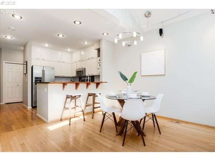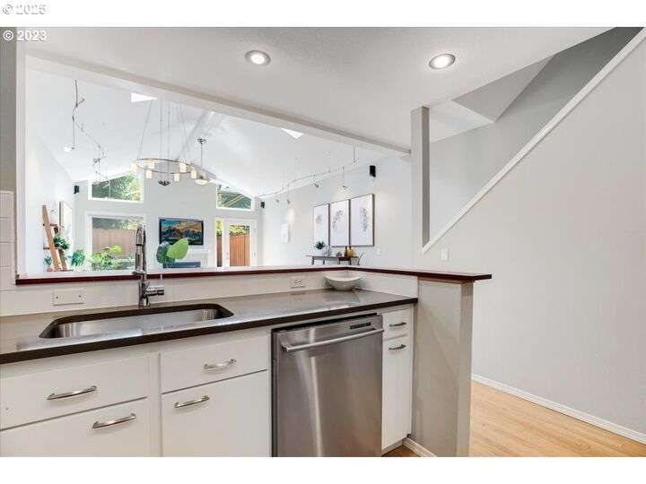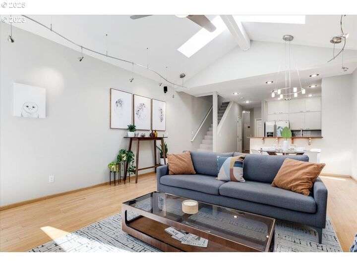 Fantastic Nob Hill townhome, a quiet retreat full of natural light in the heart of trendy NW Portland. This must-see is not just a home but offers the perfect lifestyle just blocks from boutiques, cafes, and restaurants as well as Wallace & Forest Parks. Fresh design throughout with quartz counters, gas cooking,updated bathrooms, hardwood floors, skylights, wired for sound, a/c, and the perfect outdoor patio space ideal for entertaining. With high ceilings and beautiful windows, you'll be sure to love coming home to your spacious great room floor plan with 2 beautiful bedrooms upstairs. This home is fully equipped with lots of storage space and a full laundry room. Wonderful investment property with limited CCRs, NO HOA, and min 30-day rentals allowed. Just a short distance to OHSU, I-405, Nike, Intel, and the Tech Corridor!
