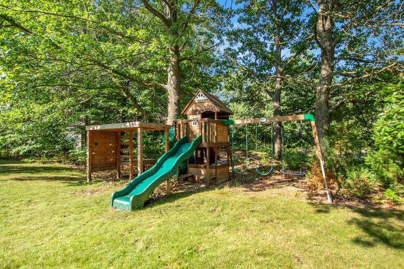 Experience luxury with an ''Up North'' feel in this stunning 6 bedroom, 3 full and 2 half-bathroom home, ideal for both relaxation and entertaining. Professionally designed with elegant finishes, this home features wood floors, a spacious kitchen with stainless steel appliances, and a daylight basement that's an entertainer's dream-complete with a beautifully crafted stone bar, second kitchen, and rec/game room. Recent upgrades include an air purification system, generator, above-ground heated pool, new Andersen windows, new water softener, and brand-new furnace and AC. Nestled on two acres, this home offers the perfect escape, surrounded by nature and close to the Pigeon River and Lake Michigan beach access. Perfect for the discerning buyer seeking a refined yet nature-inspired lifestyle