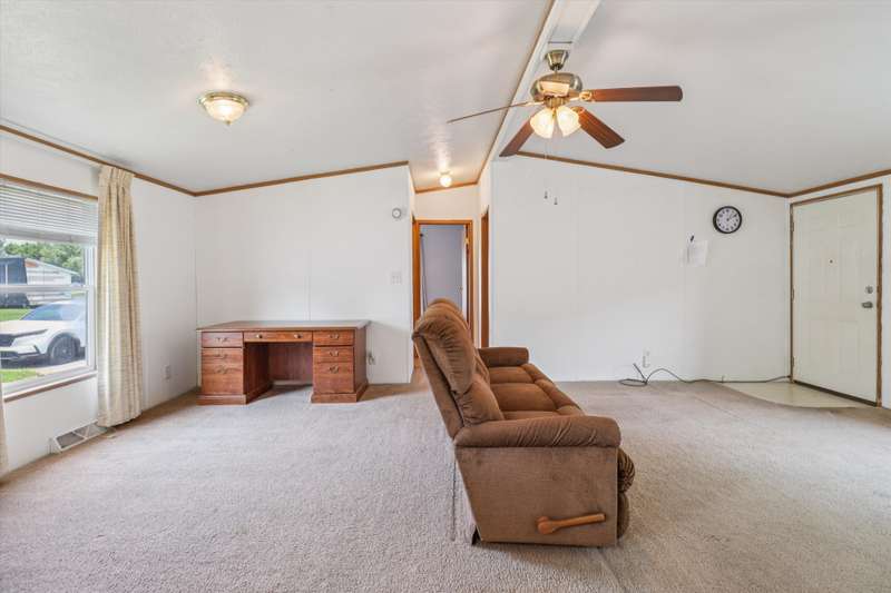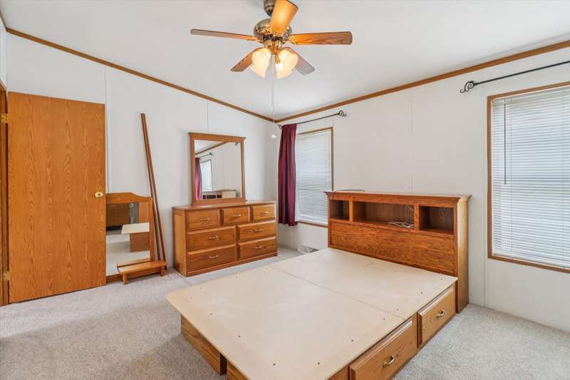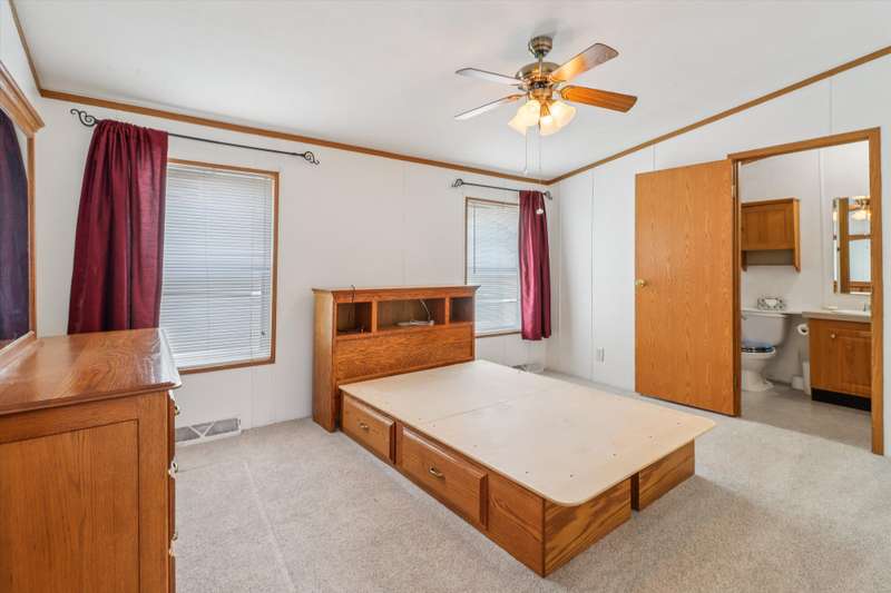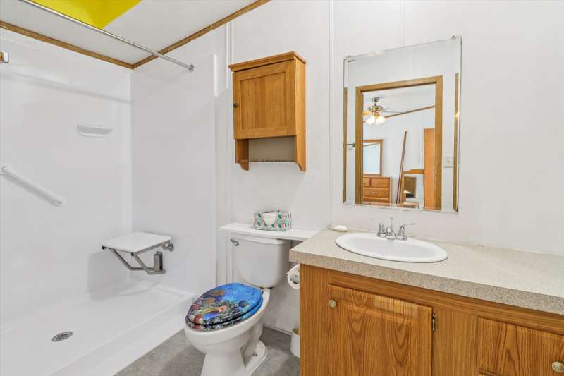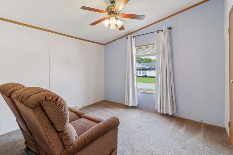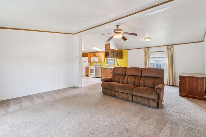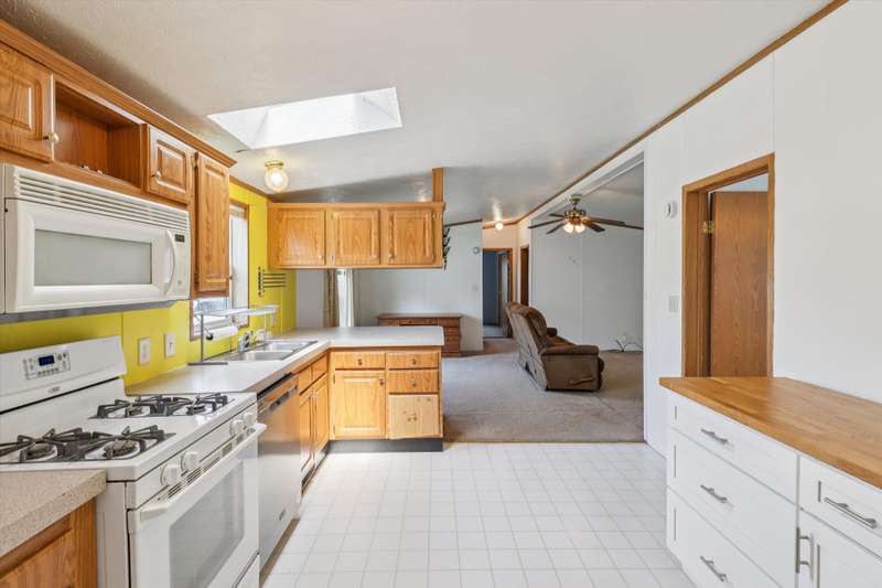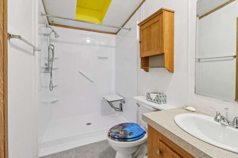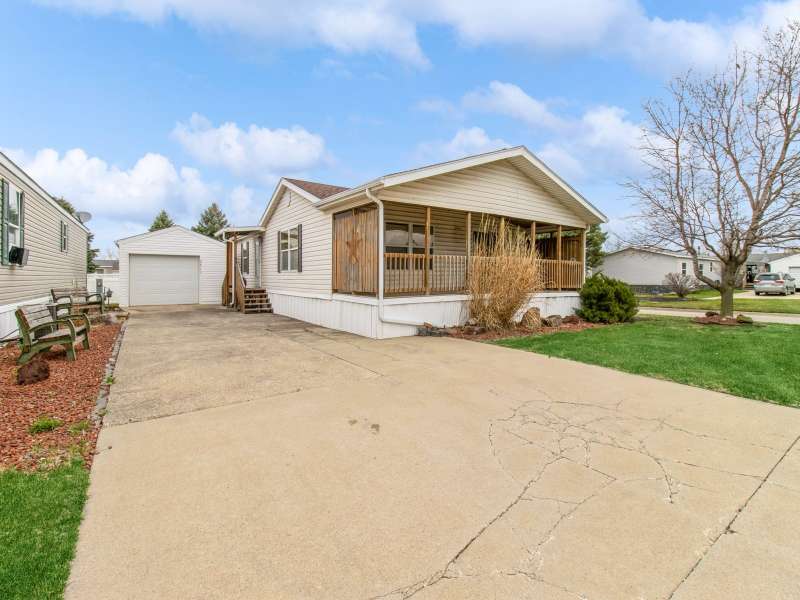 Well-maintained Skyline double-wide mobile home in Autumn Ridge Mobile Home Park, offering 3 bedrooms, 2 bathrooms, and 1,248 sq. ft. of living space. Features an updated primary bathroom with a walk-in shower. All appliances are included, along with a single-car garage and a storage shed.