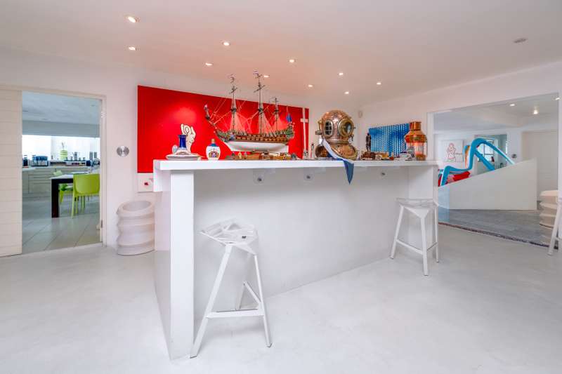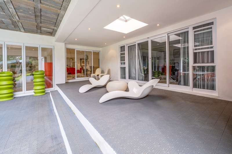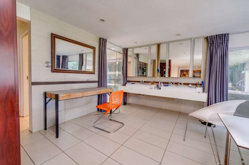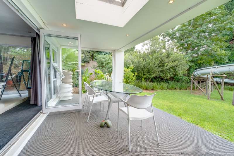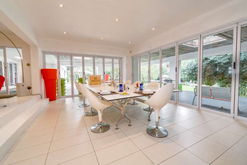 Serious Seller Considering Reasonable Offer! Discover the perfect blend of luxury, privacy, and potential in this exquisite 4-bedroom residence nestled in one of Bryanston East Central's most sought-after boomed-off locations. Set on an expansive 4141 sqm erf with subdivision potential, this light-filled contemporary home offers elegance, comfort, and state-of-the-art finishes throughout. Main Residence Features: • 4 spacious bedrooms | 3.5 bathrooms • Modern, airy design with large industrial-style frame windows • Grand entrance with a tranquil waterfall feature • Chef’s dream kitchen with: - Corian countertops - Central island with stove & extractor fan - Double-door fridge space - Eye-level oven - Walk-in pantry, scullery & laundry room - Dining area with 10-seater table space • Expansive lounge, next to a spacious Cinema room, fireplace flowing onto a spacious dining room • Stacking doors open to a large covered patio with skylights • Overlooks a lush manicured garden, ancient trees & twin-jet pool Bedroom Wing: • 4 spacious bedrooms with full bathrooms featuring skylights & Cobra taps/mixers • All bedrooms offer built-in cupboards & sliding doors opening to the garden • Luxurious master suite includes: - Fireplace & space for king-size bed - Double vanity basins, walk-in closet, walk-in safe - Spa-like en-suite bathroom, free standing bathtub, bidets toilet with large shower & serene outdoor feel - Industrial-style stacking doors to garden Secondary Dwelling: • Ideal for extended family, rental income, or home office • Potential 2 bedrooms, open-plan kitchen, lounge & dining area • Private entrance, driveway & patio overlooking garden • Potential Subdivision Additional Features: • 6 automated garages • 2 guard houses • Full home automation system • 2 staff quarters with bathroom facilities • Excellent security within a gated & boomed-off community This property offers incredible potential and a premium lifestyle, perfect for the discerning buyer looking for space, security, and elegance in a top Bryanston location. Contact us today to arrange a private viewing and experience the charm and sophistication of this one-of-a-kind home.