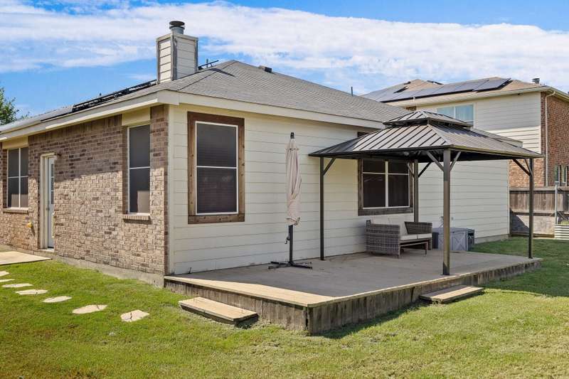 Amazing Home at great price! Make this charming 3 bedroom, 2 bath home yours! Featuring a versatile flex room ideal for a home office, playroom, gym, or whatever you can imagine - this layout adapts to your lifestyle. Enjoy stylish kitchen and master bath updates including a luxury shower. The large kitchen opens into the living area and includes all the appliances, including a brand new refrigerator. The fenced backyard has a deck with a covered area for relaxing. Enjoy the money-saving benefits of solar panels and a Tesla battery. Located just minutes from the shores of Lake Lewisville, youll have easy access to outdoor fun at the Little Elm Beach while still being close to shopping, dining, and major roads. This home is move-in ready and waiting on you-come see it today!