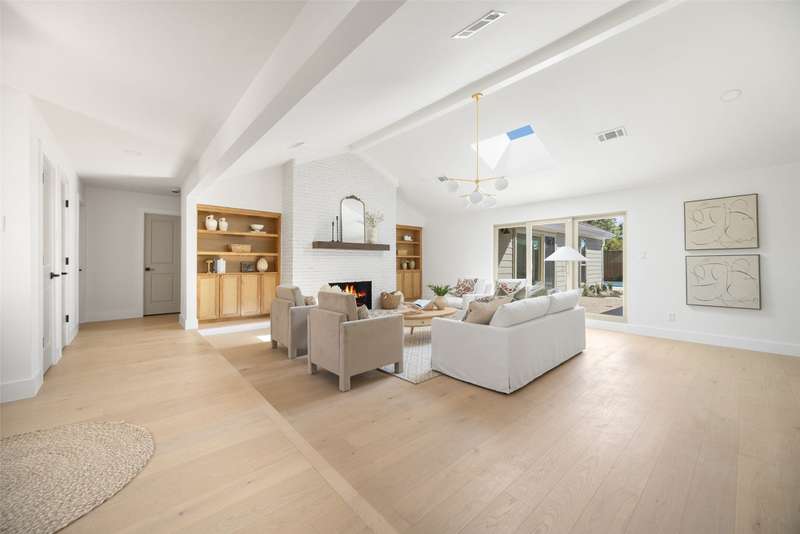 Surrounded by time-honored trees in the enchanting neighborhood Highlands North in Prestonwood, this home embodies modern luxury, nostalgia, and opportunity. Masterfully reimagined by Maverick Design, the 4-bedroom residence exudes elegance at every turnseamlessly blending contemporary sophistication with enduring charm. Open walkways, vaulted ceiling, and streams of natural light accentuate a meticulously crafted floor plan. The breathtaking light-filled dining room adjacent to kitchen sets the tone for both intimate dinners and lively gatherings, while a brick fireplace with built-in books on either side commands attention in the adjoining living space. At the heart of the home lies a chef-inspired kitchen, where custom cabinetry, sleek countertops, and a professional 6-burner gas range create a dream setting for culinary exploration. The back prep space with ample counter space leads to a charming covered patio, perfect for morning coffee. Designed for privacy and comfort, the split layout features a tranquil primary suite with direct patio access, a cozy sitting area, a spa-like ensuite with dual shower heads and oversized primary bathroom. Three additional bedrooms provide flexibility for guests, family, or a home office, complemented by a Jack and Jill bathroom and a convenient half bath. Outdoors, the low-maintenance backyard invites effortless entertainingcomplete with a refreshing pool to unwind beneath the Texas sky.