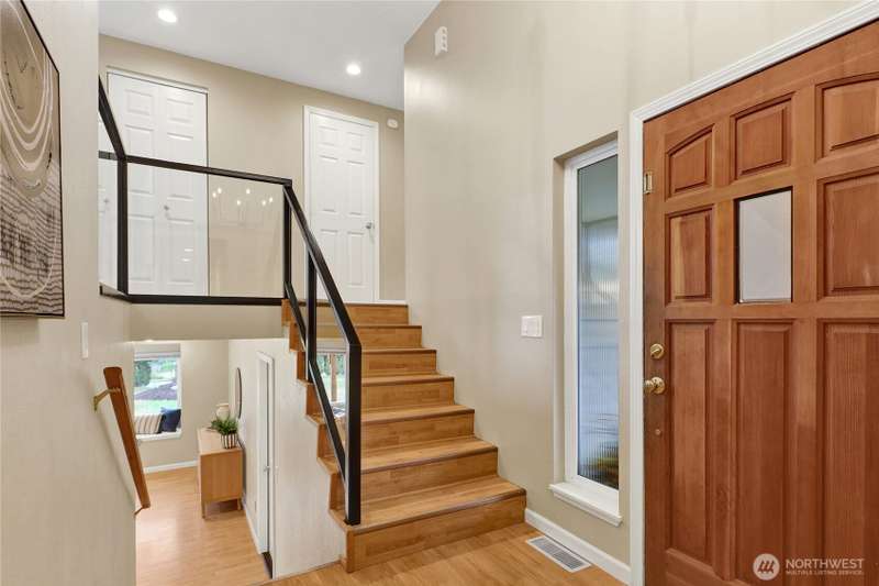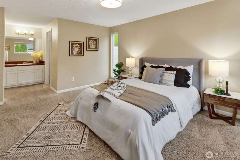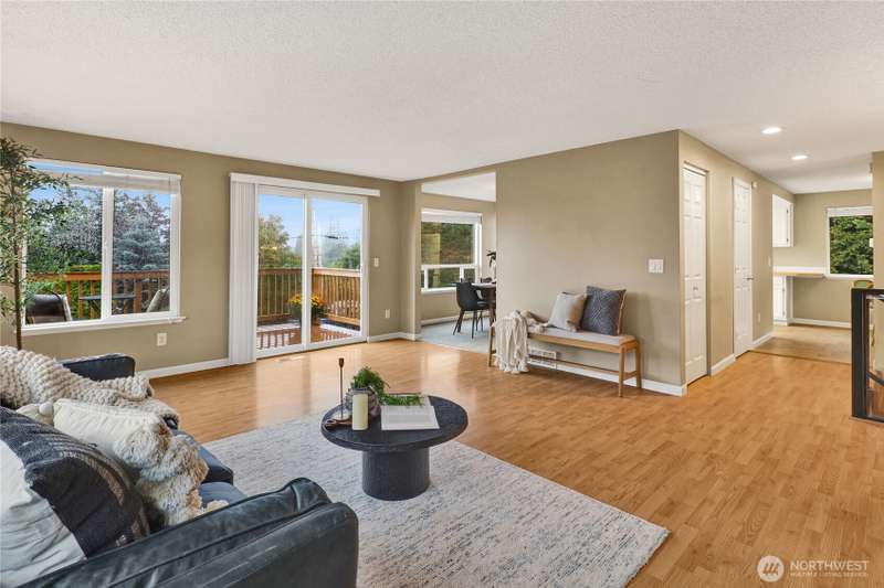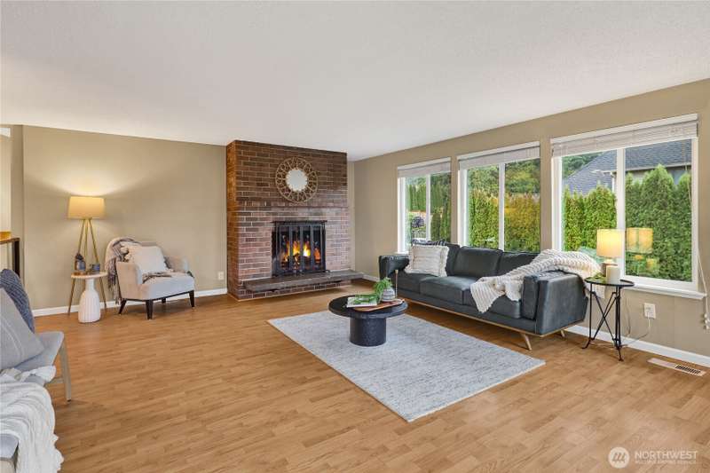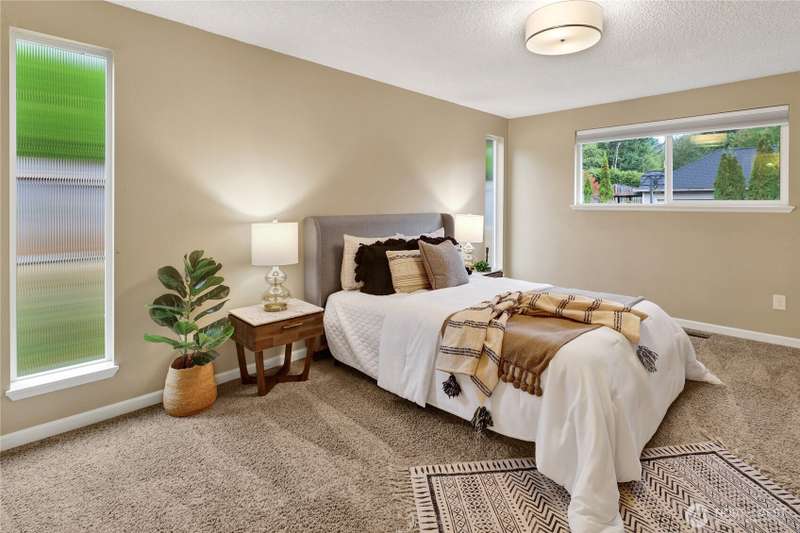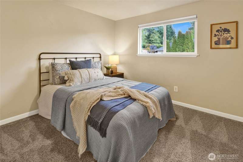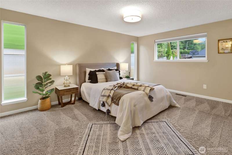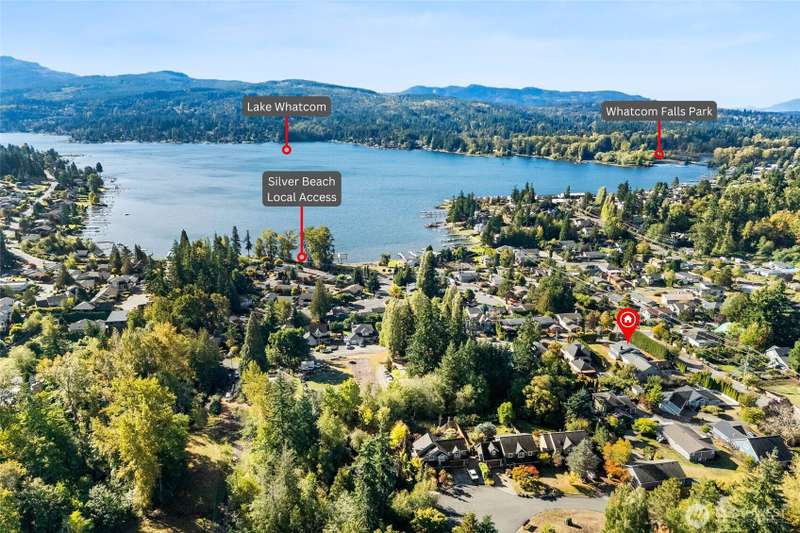 Spacious & charming Silver Beach home with sweeping lake views! This 3-bed/2.25-bath residence offers approx. 2,112 sq ft of carefully designed living space. All bedrooms are conveniently located on the main floor. Primary suite features a ¾-ensuite bath + walk-in closet. Upper floor - living room & cozy fireplace, formal dining, kitchen, & a cozy breakfast nook. Lower floor - huge rec room ideal for a home office, game room, or media hangout. Large 1/3 acre lot provides plenty of room to play or garden. New roof, newer siding, windows & more. Location can’t be beat: walk, run or bike to Silver Beach Elementary, the lake, Galbraith Mtn trails, Whatcom Falls Park, & local cafes & shops. Views, convenience, comfort—this home delivers!