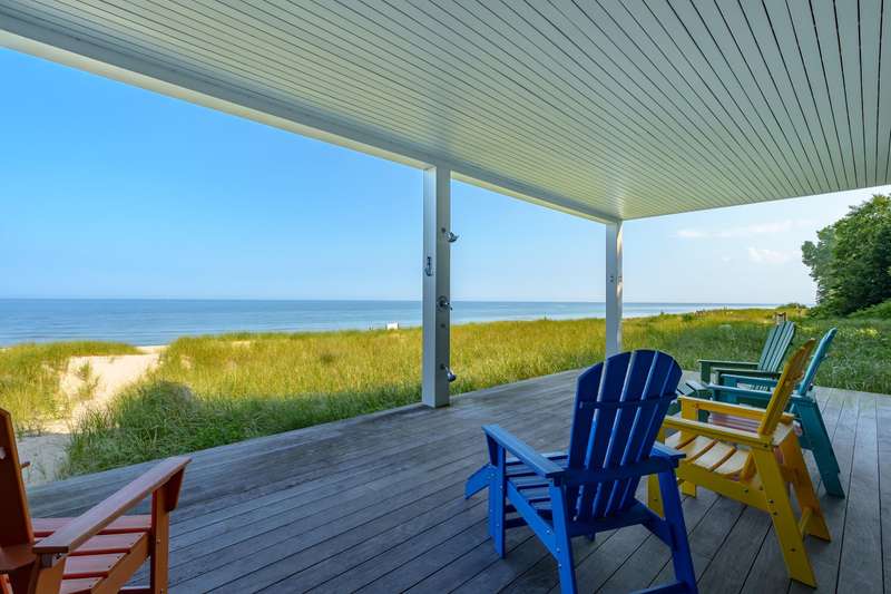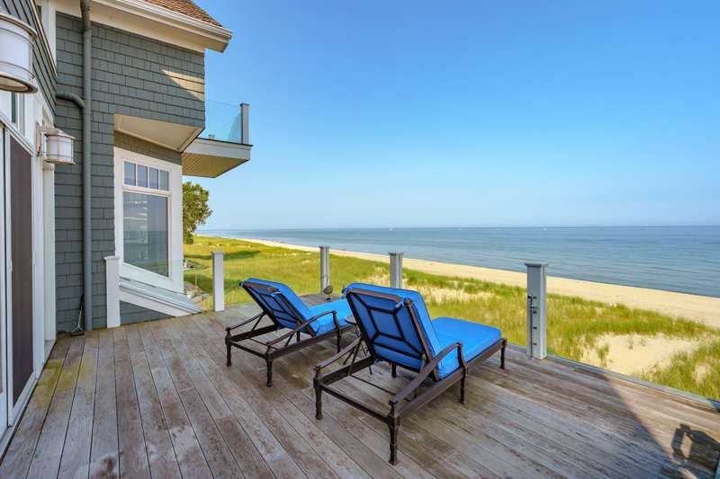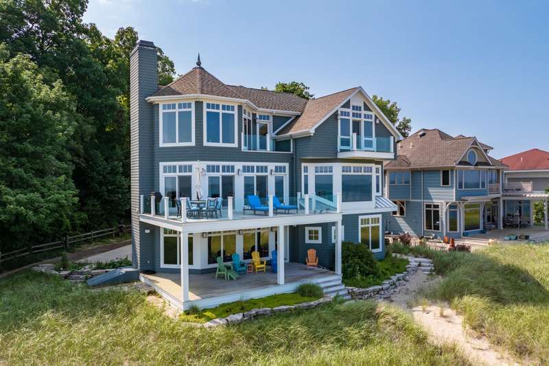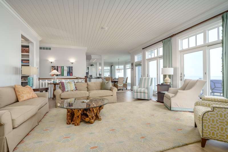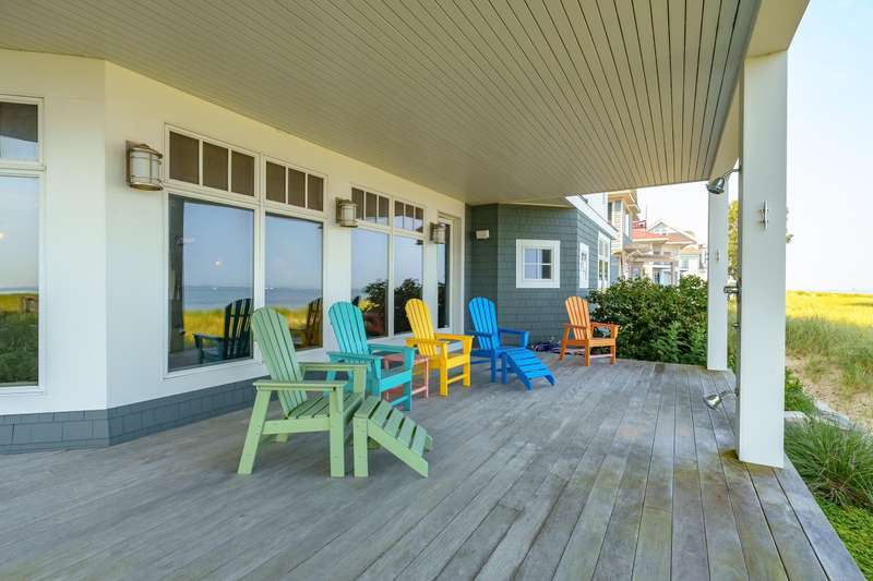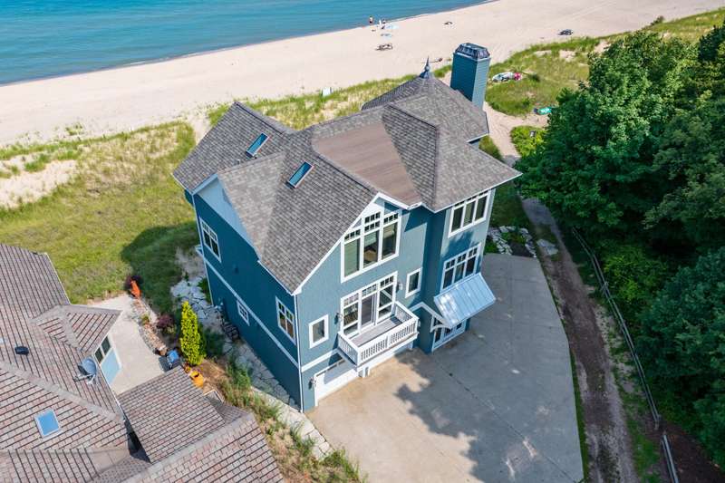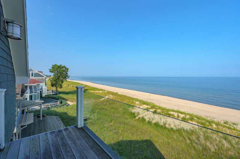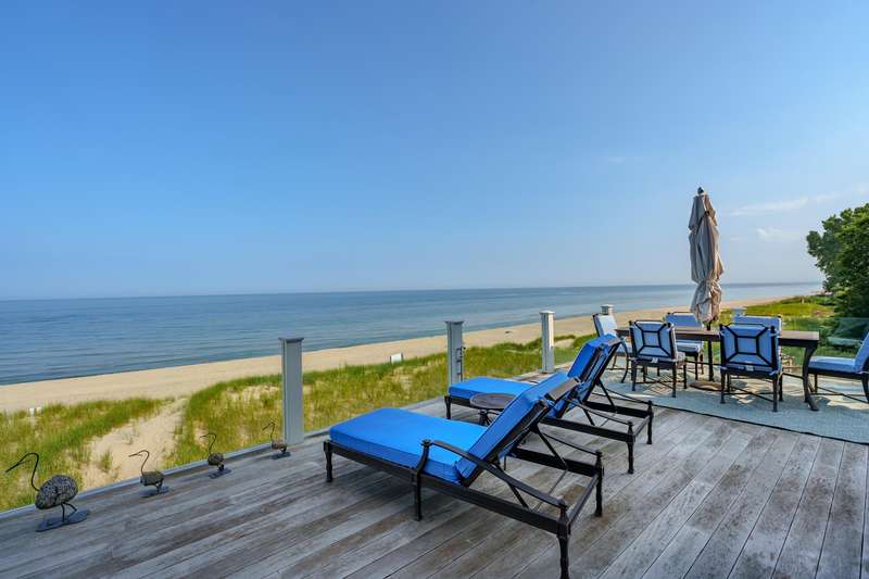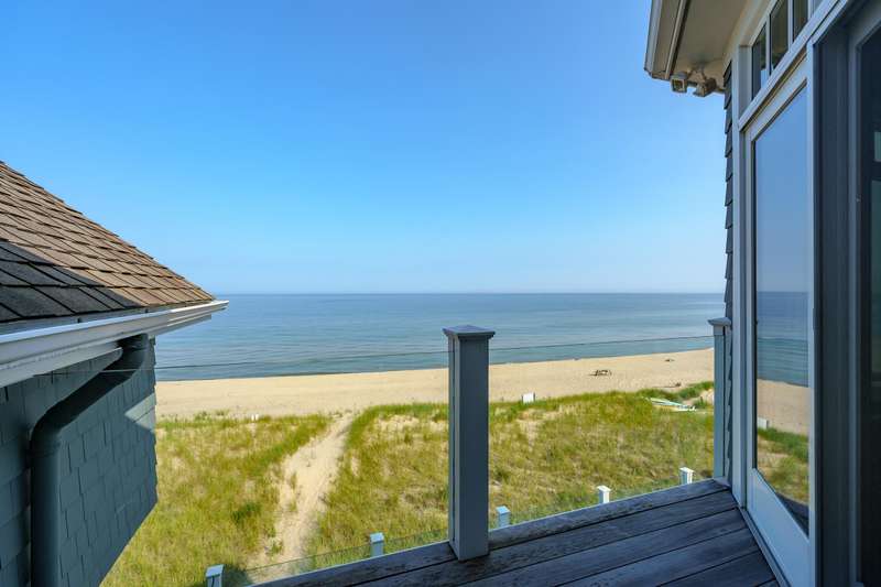 Discover this amazing beachfront luxury home with only sand and windswept grass dunes at your door! Immerse yourself in the waterfront lifestyle as this home boasts four spacious decks and a covered porch off the recreation room at beach level, creating the perfect setting for connection and enjoyment. Step into the main level and discover a sophisticated entertaining space complete with a newly constructed state-of-the-art wine vault, enhanced audio system, and a new high-definition smart TV. This level also features the 4th bedroom, 3rd full bath and beachside porch access to your own private 71ft of beachfront. Experience luxury living with sleek glass railing systems adorning the Ipe deck and easy access from the kitchen to grilling on the new gas Broilmaster grill. The kitchen is a chef's delight with so many amenities including Thermador/Subzero appliances, 6 burner gas range with hood, Thermador convection double ovens, 48" Subzero refrigerator/freezer, natural soapstone countertops, pasta pot filler faucet, instant hot water dispenser, large hallway pantry and a walkin-pantry closet off the kitchen and a spacious dining area with seating for over 20 guests!. The 10ft ceilings in the adjacent great room feature Antique-reclaimed Maple wood with worm holes and all the flooring is walnut. A convenient laundry room with quartz counters, an office with built-in desk and shelves and a powder complete the second level. The third floor is home to three bedrooms( one has a private deck), second full bath, and a fabulous primary suite featuring a gas fireplace, authentic wood ceiling, private deck and a luxurious bath with heated marble flooring, marble steam shower with heated floor, multiple heads in the shower and a separate Whirlpool cast iron tub. Please see more details of the custom finishes in the home on the attached documents, shared in the MLS listing. The home is being sold completely furnished, with a few exclusions of art, tools, bikes...listing agent can provide to buyer's agent.