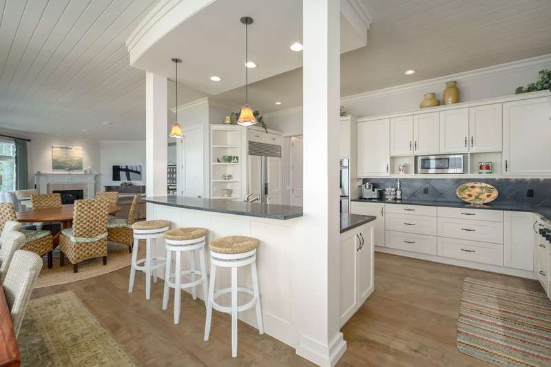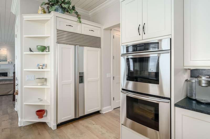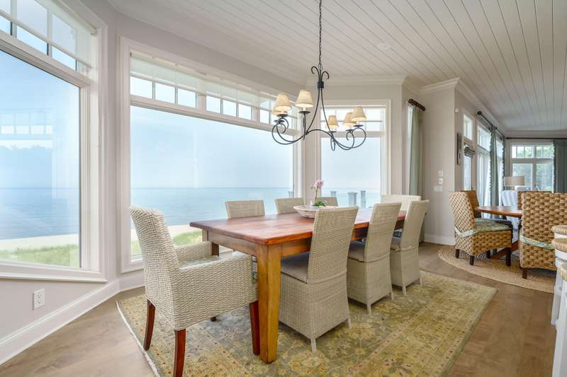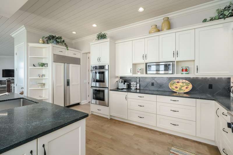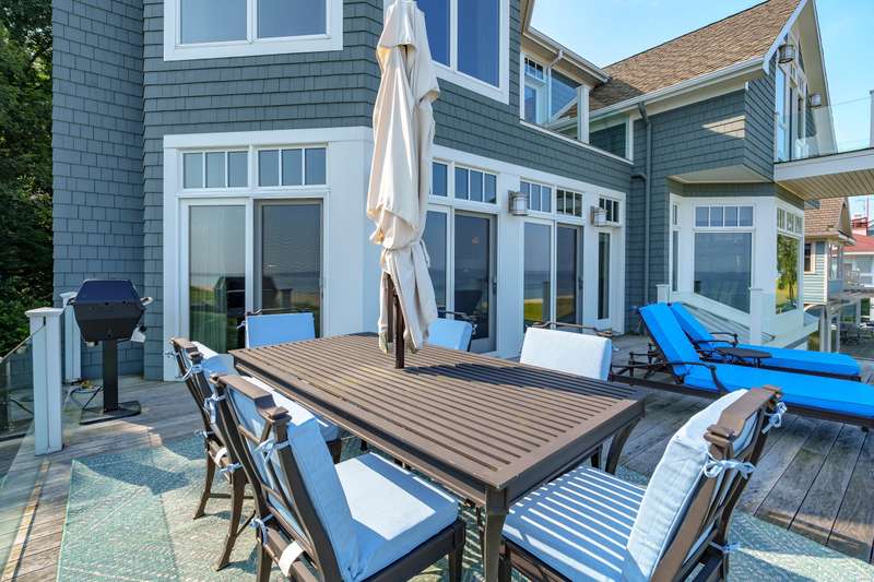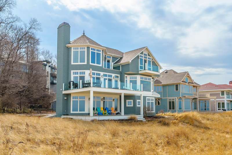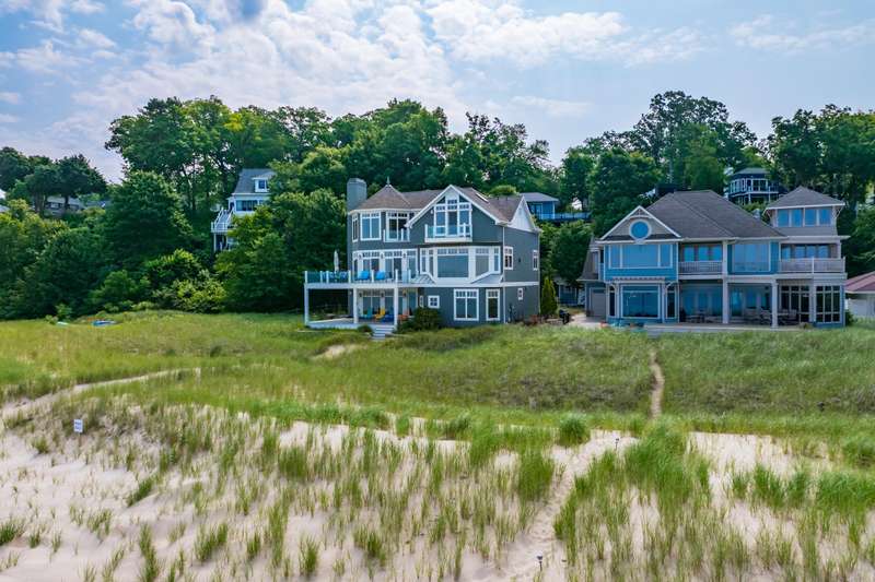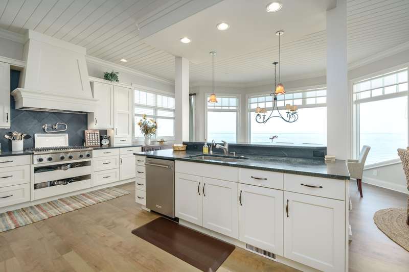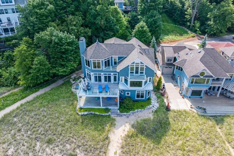 Discover this amazing beachfront luxury home with only sand and windswept grass dunes at your door! Immerse yourself in the waterfront lifestyle as this home boasts four spacious decks and a covered porch off the recreation room at beach level, creating the perfect setting for connection and enjoyment. Step into the main level and discover a sophisticated entertaining space complete with a newly constructed state-of-the-art wine vault, enhanced audio system, and a new high-definition smart TV. This level also features the 4th bedroom, 3rd full bath and beachside porch access to your own private 71ft of beachfront. Experience luxury living with sleek glass railing systems adorning the Ipe deck and easy access from the kitchen to grilling on the new gas Broilmaster grill. The kitchen is a chef's delight with so many amenities including Thermador/Subzero appliances, 6 burner gas range with hood, Thermador convection double ovens, 48" Subzero refrigerator/freezer, natural soapstone countertops, pasta pot filler faucet, instant hot water dispenser, large hallway pantry and a walkin-pantry closet off the kitchen and a spacious dining area with seating for over 20 guests!. The 10ft ceilings in the adjacent great room feature Antique-reclaimed Maple wood with worm holes and all the flooring is walnut. A convenient laundry room with quartz counters, an office with built-in desk and shelves and a powder complete the second level. The third floor is home to three bedrooms( one has a private deck), second full bath, and a fabulous primary suite featuring a gas fireplace, authentic wood ceiling, private deck and a luxurious bath with heated marble flooring, marble steam shower with heated floor, multiple heads in the shower and a separate Whirlpool cast iron tub. Please see more details of the custom finishes in the home on the attached documents, shared in the MLS listing. The home is being sold completely furnished, with a few exclusions of art, tools, bikes...listing agent can provide to buyer's agent.