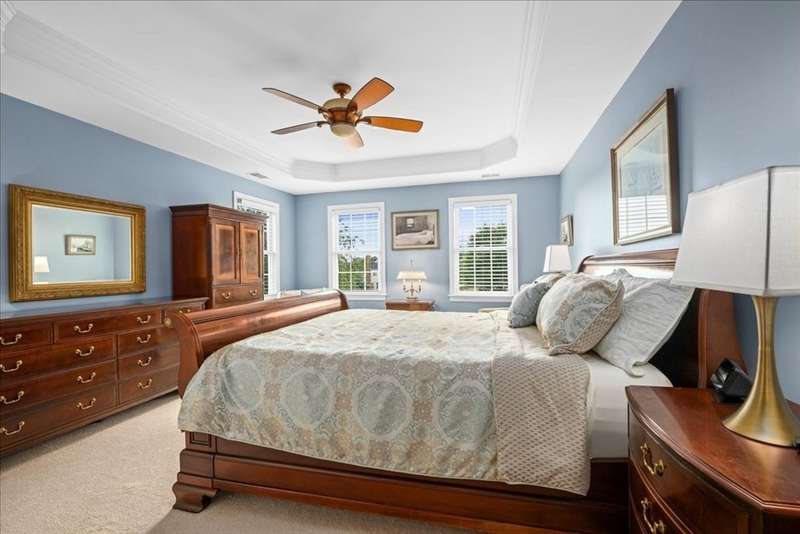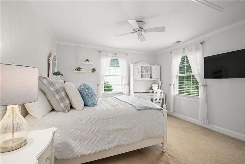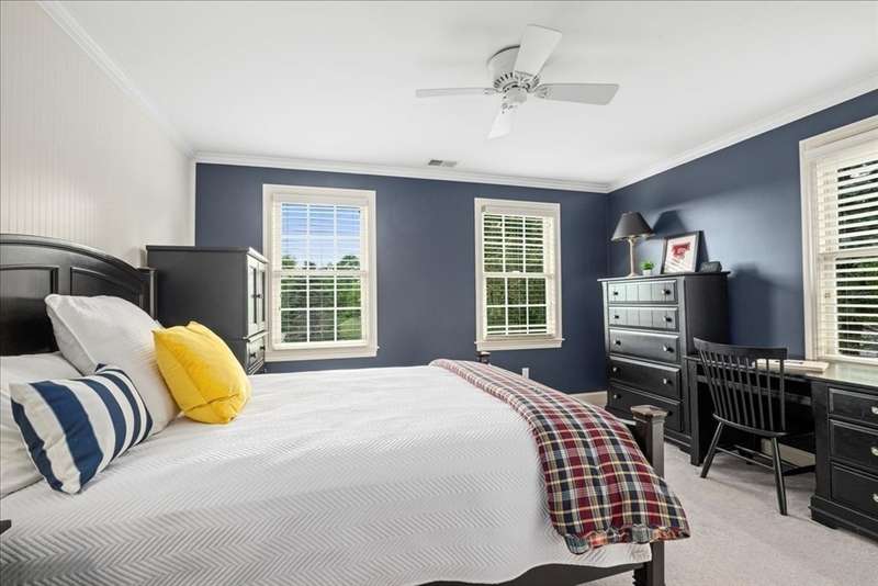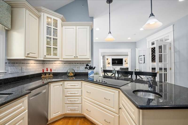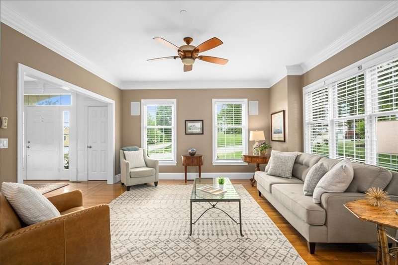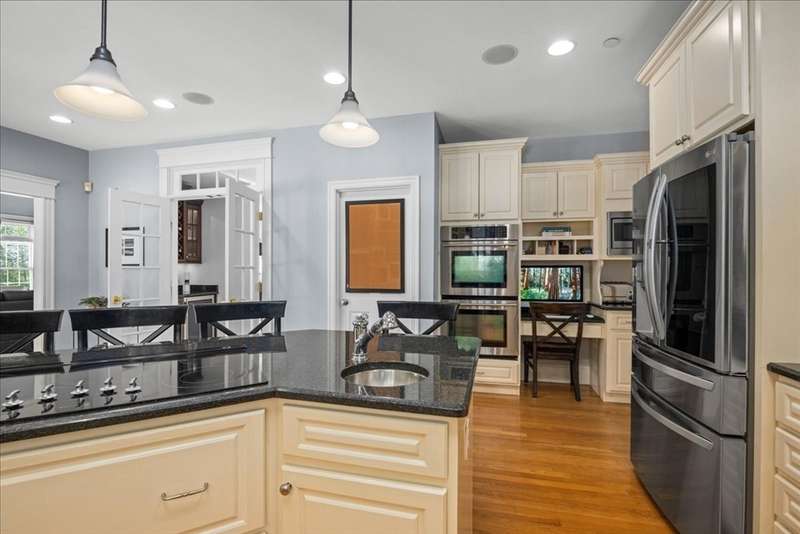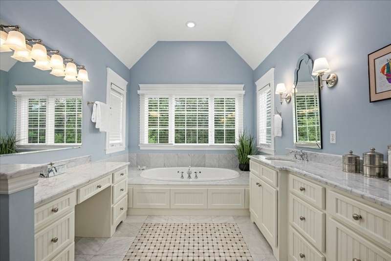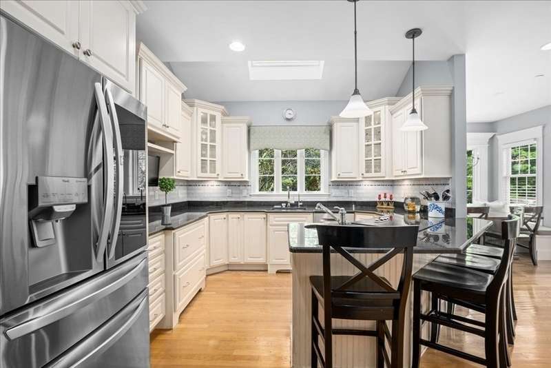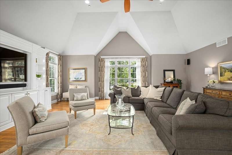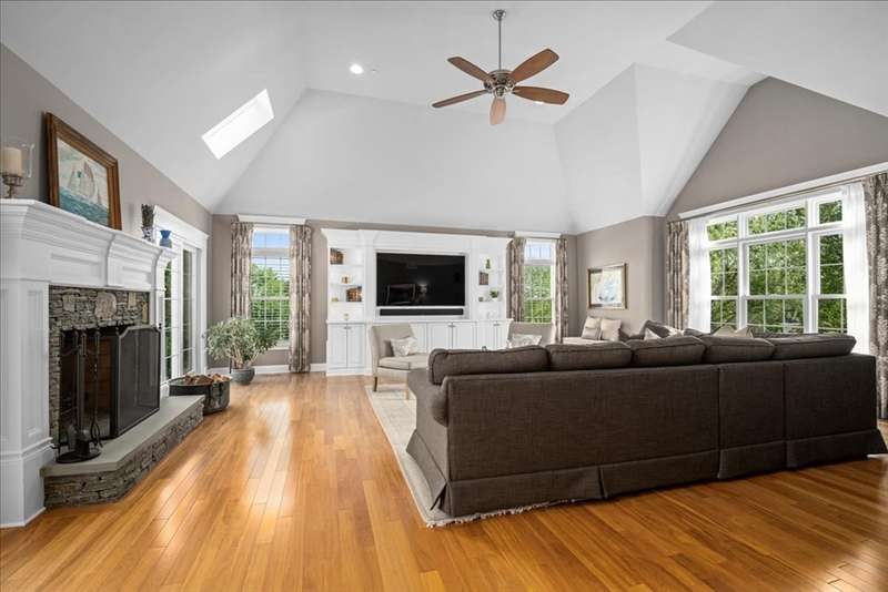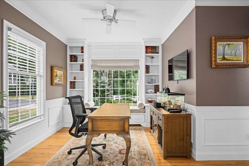 BRIGHAM WOODS - Absolutely stunning views are yours from this highly upgraded home featuring out of the ordinary super-luxe molding package, loads of hardwood flrs, special features in every room! Custom white Kitchen w/angled peninsula, WI pantry, upscale appliances, granite, marble backsplash & phenomenal bumped out custom eating nook*Formal DR w/glamorous bar w/wine chiller & ice maker*1st flr Study w/custom built-ins & picture window*Formal LR (or 2nd office)*Stacked stone FP w/impressive mantle anchors the eye-popping vaulted/skylit FamRm w/mahogany floor*2nd flr offers 4 bdr & 2 bths*Primary Suite w/extended primary bath w/Carrara marble shower/counters & upgraded cabinetry & closeted toilet*Sunny Walk-out Fin Low Lev w/gorgeous bath, wet bar w/Quartz, lrg GameRm & Mudrm area*Amazing patio area w/firepit just steps from the newer composite deck*Exterior accented with custom retaining walls, paver walk, Cape Cod lanterns & extensive low-voltage lighting*Exquisite shed*NEW roof*
