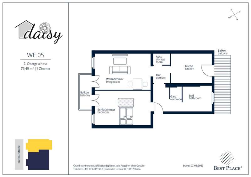 Im Jahre 1892 entstand das Wohnhaus "Daisy", bestehend aus Vorderhaus und der Remise mit einer zauberhaften Maisonette. Der Haupteingang führt direkt in den hellen, sehr gepflegten Gartenhof. Er strahlt mit seiner von Bäumen geschützten Holzbank eine ruhige Atmosphäre aus. Die vermieteten 2- und 4-Zimmer-Wohnungen im Vorderhaus verfügen über einen großen Balkon bzw. eine moderne Loggia mit Ausblick ins Grüne. So verbindet sich beim Projekt "Daisy" die zentrale, werthaltige Lage mit einer Erholungsoase zum perfekten Rückzugsort für Singles, Paare und junge Familien.