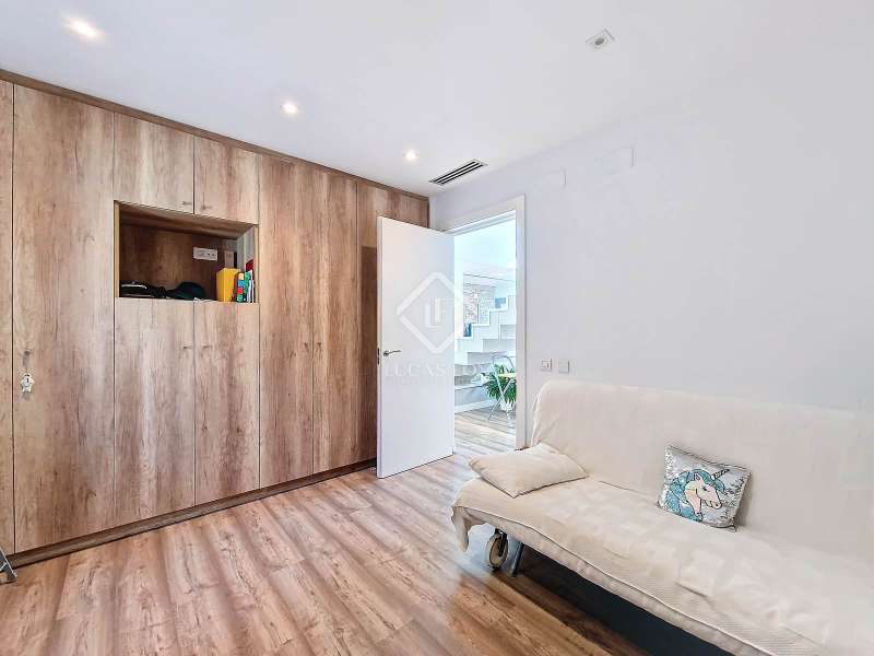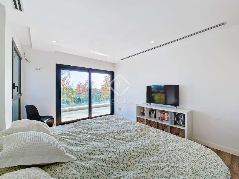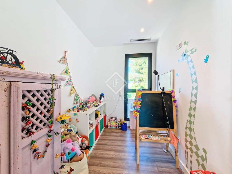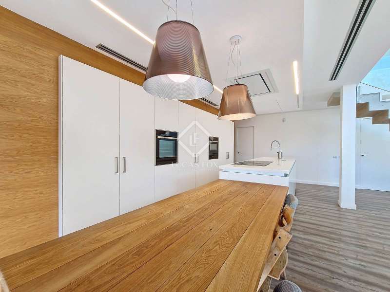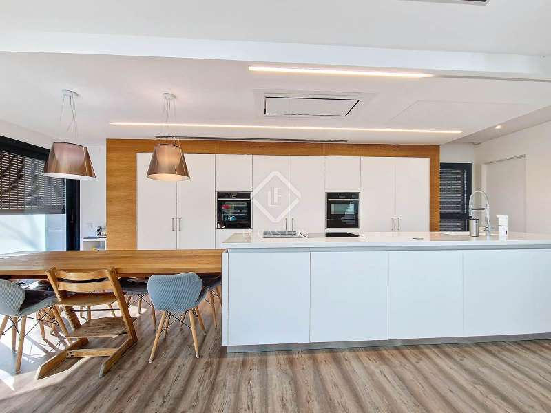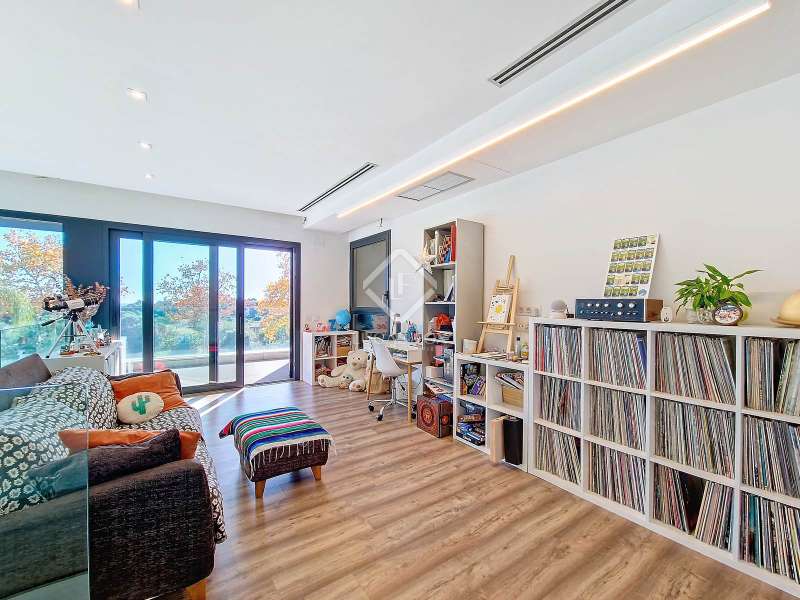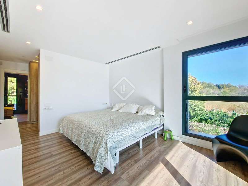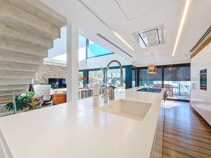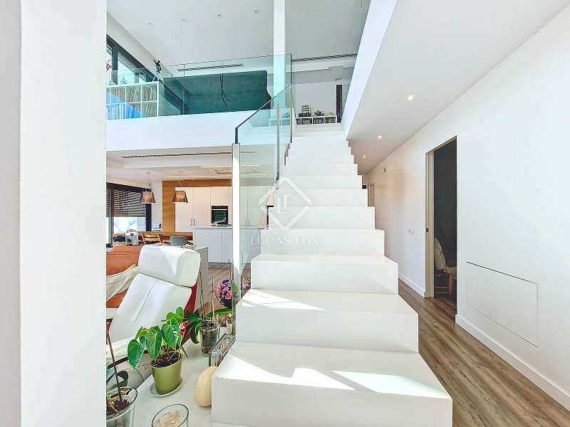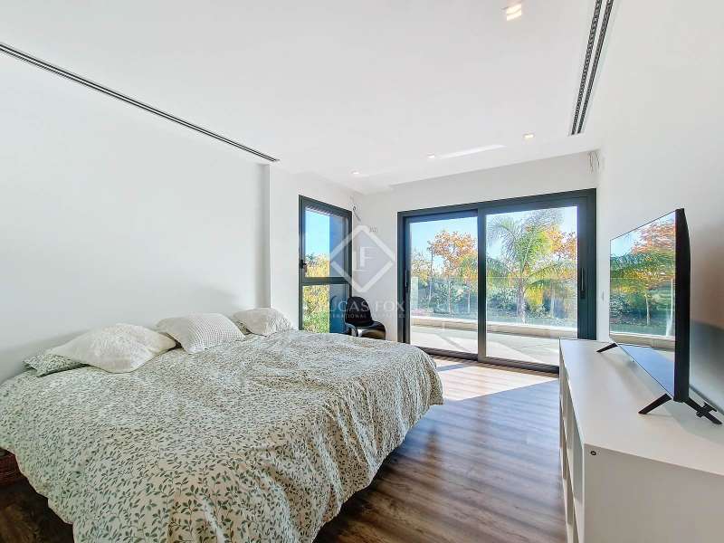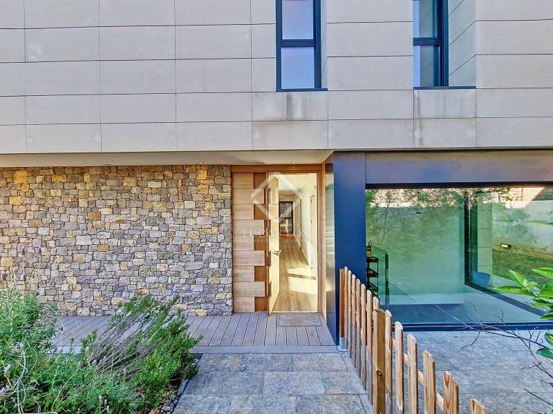 Lucas Fox presents this detached villa located in one of the most exclusive areas of Vilanova i la Geltrú. The property, which stands out for its modernity and functionality, is located just a few minutes from all amenities and is ideal for those seeking an exceptional lifestyle. The property enjoys a perfect layout. The day area is open plan, in a single room, with spacious and bright environments. It offers a comfortable living room, the dining area and an elegant integrated kitchen that connects to the exterior. Above the dining room, there is a multipurpose loft that can function as an additional living room, library or creative space. From the dining room and from the kitchen, we have access to the exterior porch. Here there is a chill-out area to relax, an infinity pool and an exterior dining room . Behind the porch, there is a garden to enjoy outdoors. On this same floor, we find a utility area, as well as a guest bathroom with a shower and a large bedroom on the ground floor ideal for guests. On the upper floor , there is the spacious and elegant main bedroom , which comes equipped with a dressing room and a private bathroom with a spacious shower. The other two bedrooms, which are bright and versatile, can be adapted to different needs. There are also two complete bathrooms with modern finishes and designer showers. On the lower ground floor, we find a multipurpose room that is currently used as a dressing room, with the possibility of converting it into a bedroom or study. There is also a wellness area with the possibility of installing a gym, jacuzzi or indoor pool, according to your preferences. The large double garage has capacity for two vehicles inside and there is an additional space for two more cars on the exterior ramp. The garage also has space to park motorcycles and even a small workshop to always have tools at hand. The machine room and wood room are complementary spaces to maximize the functionality of the home. The property includes exclusive features and high quality. The façade of the house has a modern design that guarantees thermal and acoustic efficiency. The entire property has advanced home automation that allows you to control LED lighting, air conditioning and other systems from anywhere. It has solar panels and other systems to achieve class A energy efficiency. It is also prepared to install a lift that gives access to all floors from the floor to the night area. From the first floor, there are views of the sea. In addition, thanks to its privileged orientation and its large windows, it enjoys abundant natural light in all spaces. This property is located in one of the most exclusive areas of Vilanova i la Geltrú, offering privacy while being close to all necessary amenities : schools, shops, restaurants and leisure areas . Its residential setting is ideal for enjoying tranquility without giving up the convenience of a central location. This property boasts luxurious design, quality, innovation and sustainability. Every detail has been carefully thought out to offer comfort, exclusivity and style. Don't miss the opportunity to visit this unique property. Contact us for more information or to arrange a personalized visit.