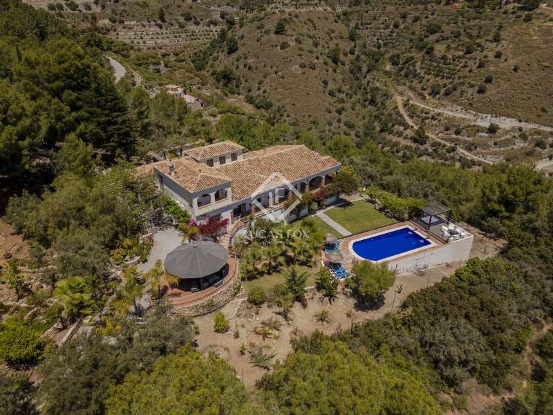 Lucas Fox presents Villa El Marchante, boasting stunning sea views thanks to its elevated hilltop location in a secluded area of La Herradura, Granada. From its privileged position, the villa offers panoramic views to the south: the sea, La Herradura Bay, and the protected Cerro Gordo Natural Park. The 440 m² property sits on a 25,000 m² private plot with gardens and woods, offering tranquility and comfort. The property also features a swimming pool, surrounded by grass and vegetation, right in front of the property , along with an exterior bar and barbecue area, as well as a Jacuzzi area, perfect for enjoying the Mediterranean climate year-round. Inside, the home offers open-plan spaces and large windows offering views of the landscape from almost every corner. The house has been designed to offer comfort in all seasons: cool in the summer, warm in the winter. It features a modern fireplace and air conditioning in all rooms, including the kitchen and entrance hall. Each of the five bedrooms has a private bathroom. Technical and connectivity features, including Wi-Fi, complete the amenities for modern living. The property is surrounded by nature and absolute tranquility, with no close neighbors, within a nature reserve, ensuring complete privacy and exclusivity. It is also close to the village of La Herradura, just 1.5 kilometers away, and 3 kilometers from the beach. Villa El Marchante offers a relaxed lifestyle, ideal for disconnecting, but close to all amenities.