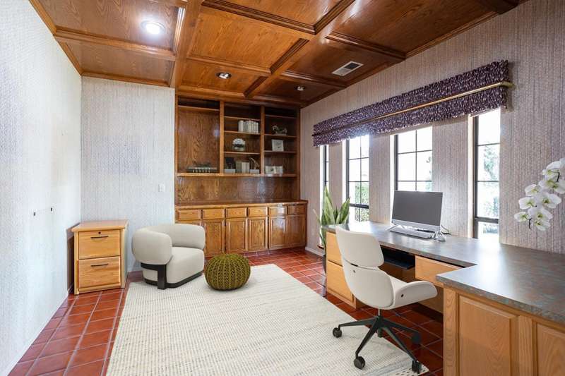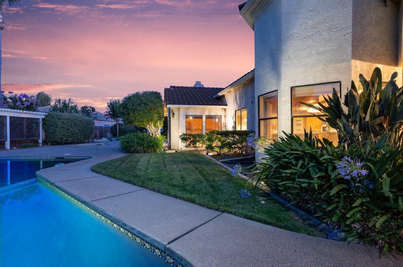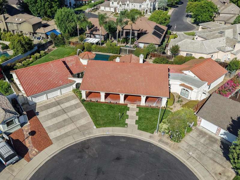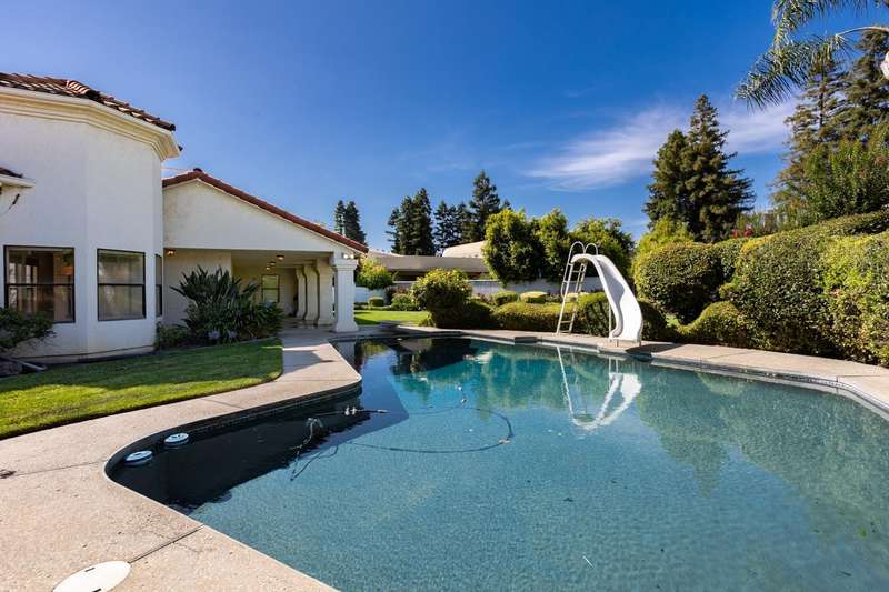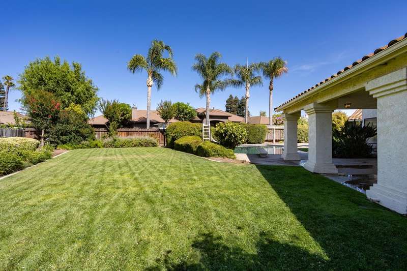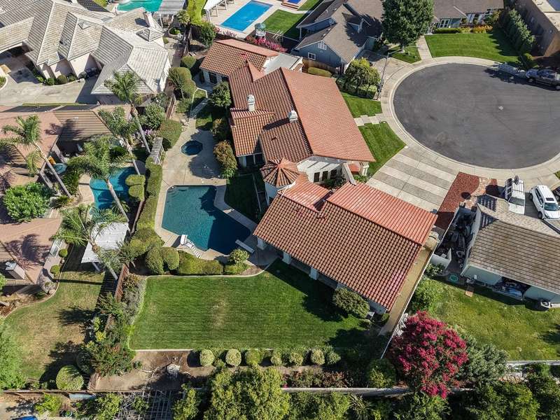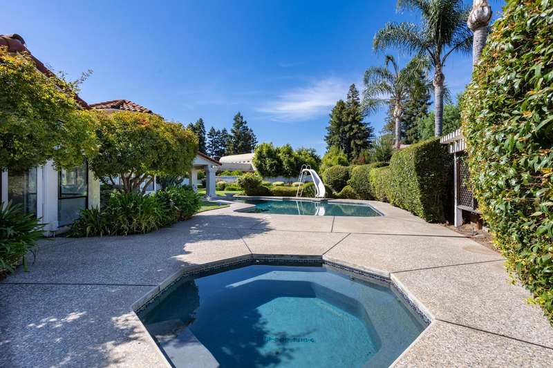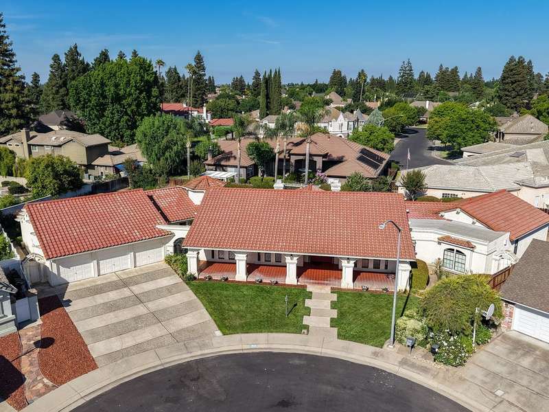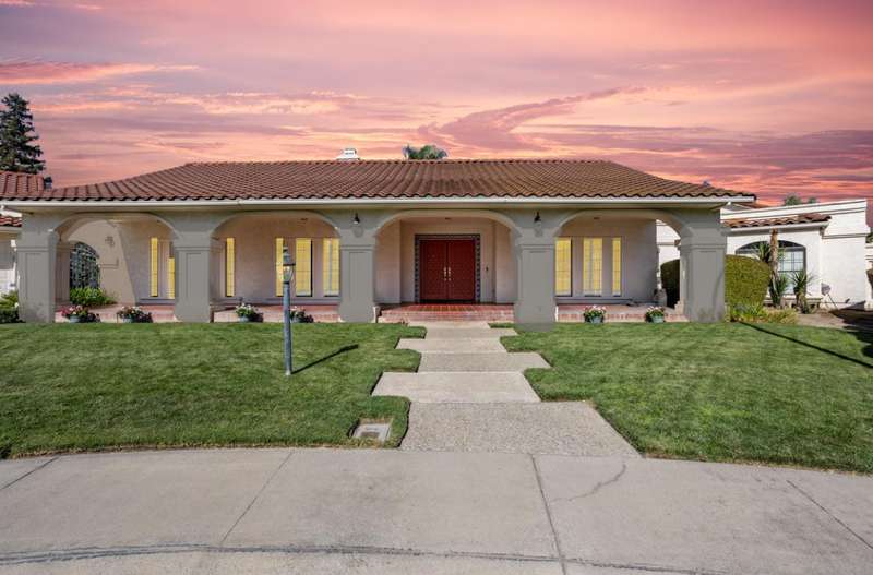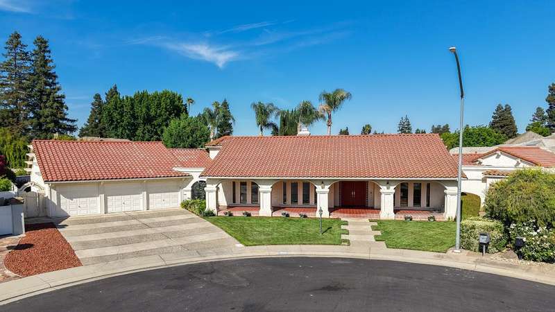 An extraordinary offering in Modesto's prestigious Dutchhollow neighborhood, this original-owner estate sits on a quiet, secluded court and offers timeless Spanish-inspired architecture with striking curb appeal. Situated on a sprawling 0.41-acre lot, this hard-to-find single-level home features 3730 sq.ft., 4 spacious bedrooms, a dedicated office, and a versatile room ideal for a home gym, studio, or game room. The true highlight of this residence is the breathtaking resort-style backyard a private, meticulously landscaped retreat featuring a sparkling built-in pool and spa, and an expansive covered patio that stretches along the home's rear elevation. Thoughtfully designed for seamless entertaining and everyday relaxation, the outdoor space is framed by mature trees, lush lawns, and tranquil privacy. Inside, the great room stuns with soaring wood ceilings, dual fireplaces, and a built-in bar. The primary suite is a peaceful sanctuary with dual walk-in closets, a luxurious bath, and private backyard access. A 3-car garage, beautiful Spanish tile roof, and refined interior finishes complete this rare opportunity in one of Modesto's most desirable enclaves.