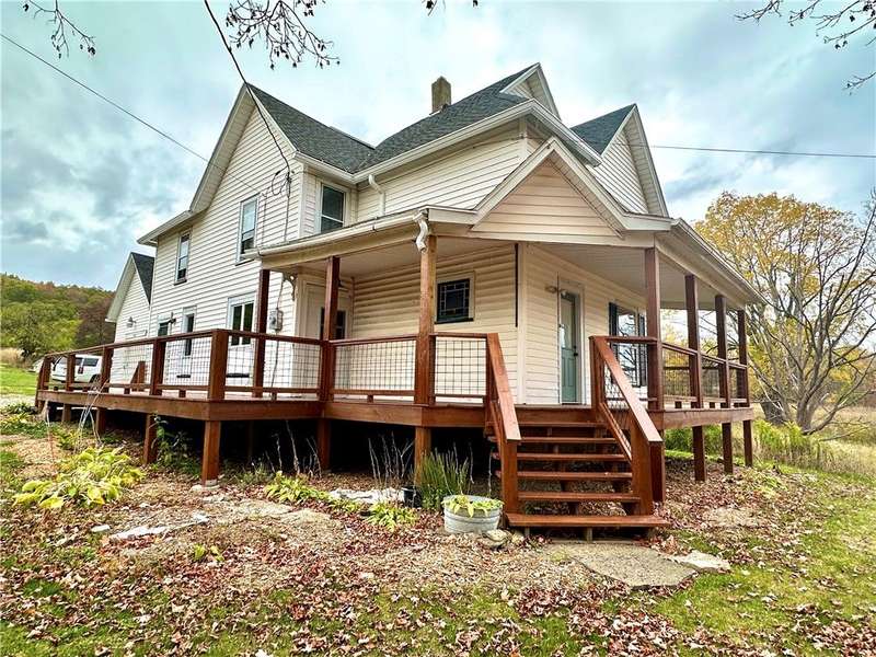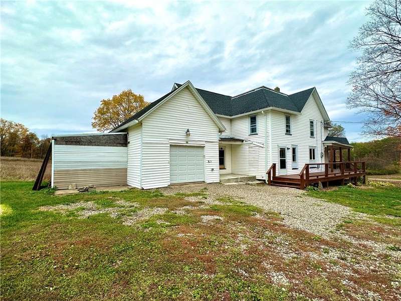 Step into country charm with this 1900's farmhouse on 8+ picturesque acres. Featuring 4 spacious bedrooms and 2.5 stylish baths, this home blends timeless character with many modern upgrades including newer roof and furnace, new kitchen and baths, windows, plumbing, electric, flooring, hot water tank, water filtration system, and more. Large, open kitchen and dining area, 1st floor laundry, bonus 1st floor room would be ideal for 5th bedroom, home office, den, playroom, craft room, or an exercise room. There's even a walk-up attic space perfect for storage. Some trim and finishing work needed in places, but it's perfect for hobby farmers and gardeners looking for peaceful rural living. Bring your chickens, pigs, goats, and ATV's and start enjoying this wonderful property!