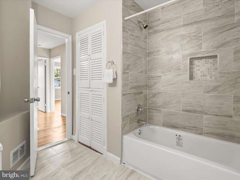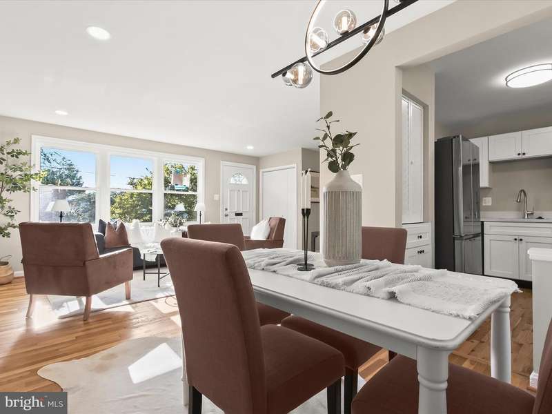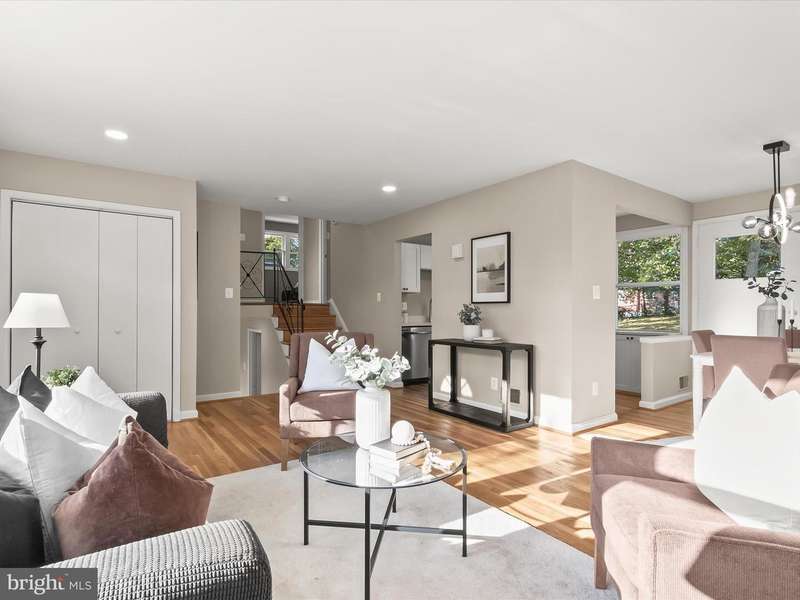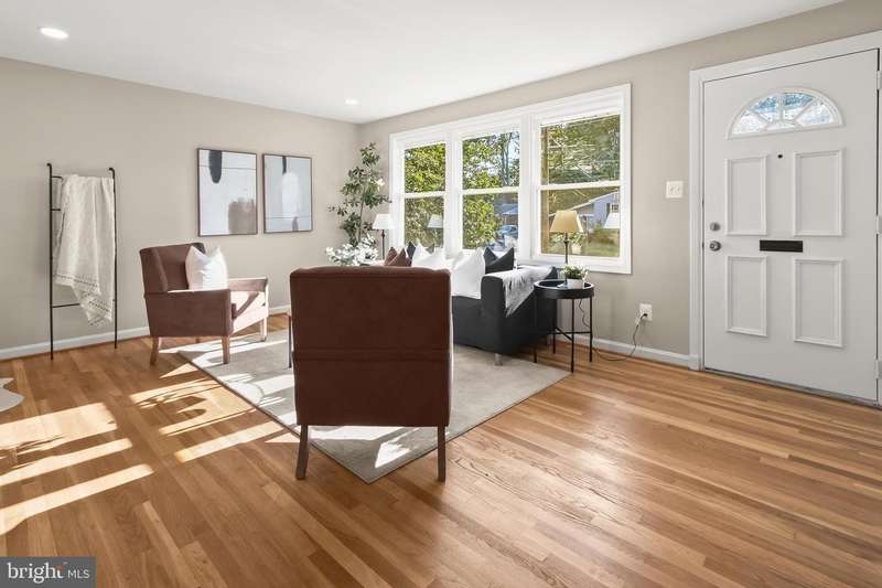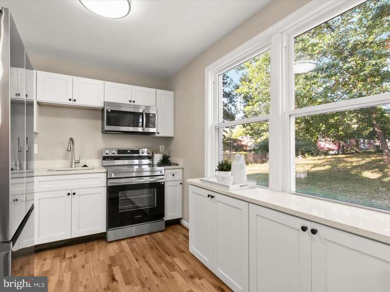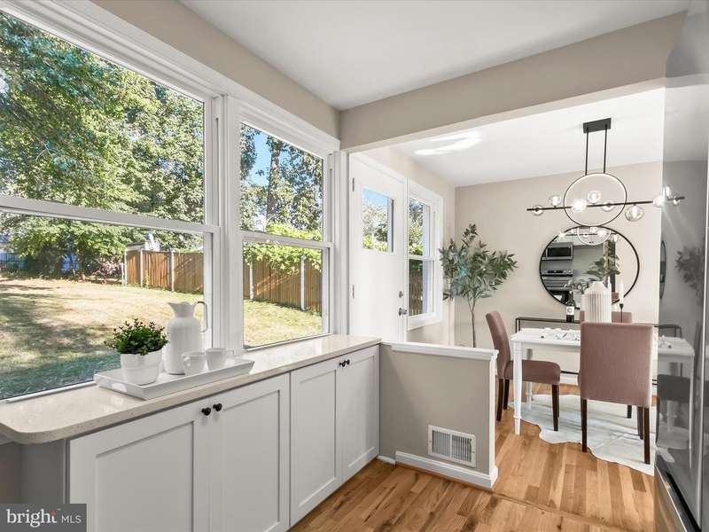 Nestled in the Greenwood Knolls community, this renovated split-level home combines modern updates with a comfortable layout and a convenient Silver Spring location. Step inside to the welcoming living room, where three large windows fill the space with natural light and refinished hardwood floors extend throughout the main and upper levels. The living room flows seamlessly into the dining room, highlighted by a stylish light fixture and direct access to the back patio. The fully renovated kitchen is a standout, featuring soft-close cabinetry, quartz countertops, stainless steel appliances, and an additional counter with cabinetry under the windows for extra storage and workspace. A few steps lead to the upper level, where the spacious primary bedroom is joined by two additional bedrooms. The renovated full hall bath has been fully updated with a tiled tub and shower surround in large-format tile, lending a clean, modern look. On the lower level, the family room offers a comfortable retreat with new carpeting, complemented by a second renovated full bath with a floor-to-ceiling tiled shower. A utility room provides functionality and storage. The expansive backyard, fully fenced and framed by mature trees, creates a private setting for outdoor living. Significant updates add peace of mind, including a new roof, new windows, a new Rheem furnace, a new 200-amp electric panel, and an updated electrical and lighting package throughout the home. The location further enhances the appeal. Daily necessities are close at hand, with shopping centers, dining, and services conveniently located along Randolph Road, Georgia Avenue, and Connecticut Avenue. For recreation, the nearby Sligo Creek Trail offers over 10 miles of paved pathways for biking, running, or walking, as well as playgrounds and picnic areas set in beautiful parkland. Commuters have excellent options, with the Silver Spring Transit Center just a short drive away. This hub provides access to the Metro Red Line, MARC's Brunswick Line, multiple Ride On and Metrobus routes, and will soon serve the Purple Line. Drivers benefit from key roadways such as Maryland Route 410, which connects Silver Spring to Bethesda, and beyond, while Georgia Avenue and Connecticut Avenue offer direct routes into Washington, DC and toward the Beltway. With its thoughtful renovations, inviting living spaces, and central location, this Greenwood Knolls residence is move-in ready and designed to suit both lifestyle and convenience.