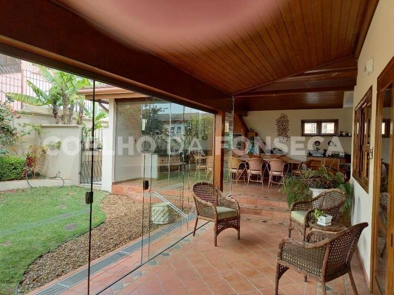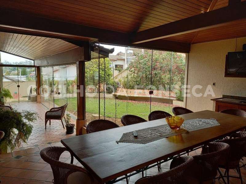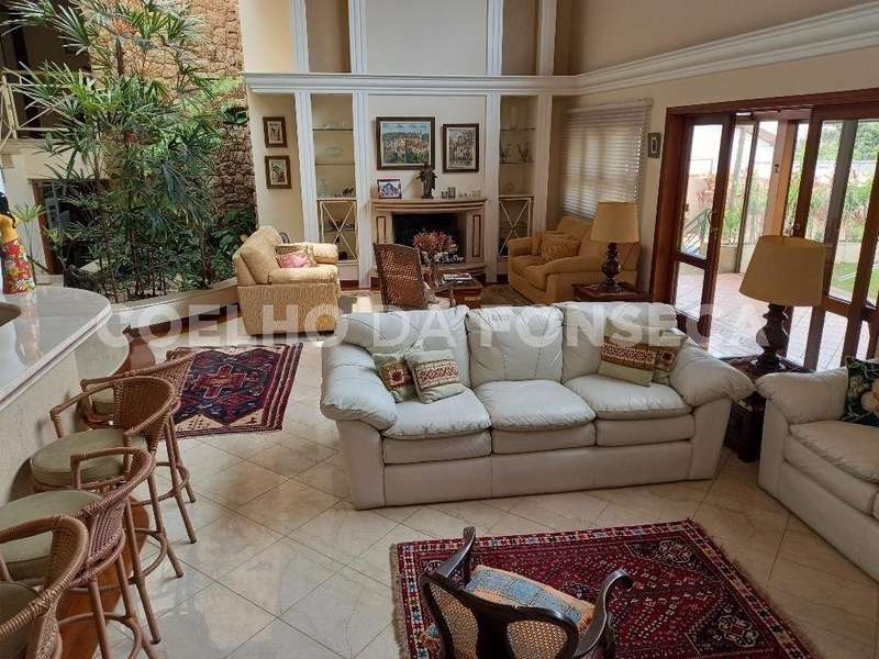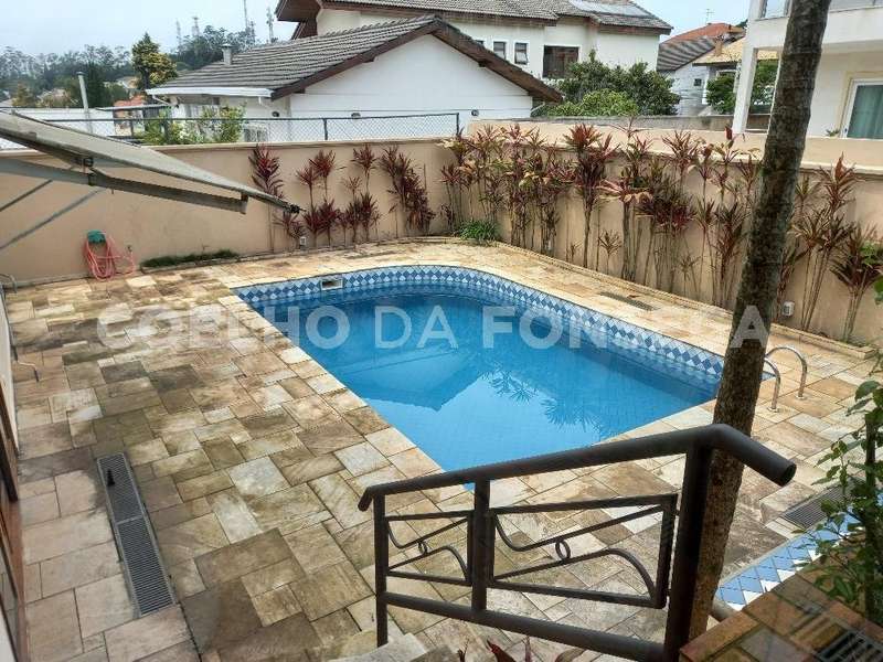 Casa em Condomínio no bairro Aldeia da Serra com 586m² área construída, 4 dormitório(s), 4 suíte(s), 7 vaga(s), 7 banheiro(s), piscina, escritório, sauna, depósito, ar condicionado, dep. de empregados, reformado (a), varanda, pé direito duplo, casa terrea.