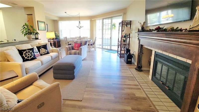 Welcome to care free living in the wonderful private Lake Erie front gated community of LeMarin, on Catawba Island, with a 35' DOCK INCLUDED! Being sold turn key (all large furniture included), this one level first floor condo with 2bedroom/2bathrooms comes with a covered patio that faces the tennis courts and has full community amenities! Spacious living room with newer flooring (2022) is open to dining room and patio, and a pass thru to the kitchen for easy access. Open kitchen includes all appliances and has plenty of cabinet space, quartz countertops and a nice pantry. Laundry/utility room off of hallway. Master suite opens to patio, and has updated (2022) powder room including newer shower! Second hallway bathroom updated, with a low step shower too. 1 car attached garage with new door & opener 2024. Just in time to move right in and enjoy the fall on Catawba! Close to shopping, ferries, restaurants and beaches. All measurements are approximates. Taxes for current owner, subject to change with sale.