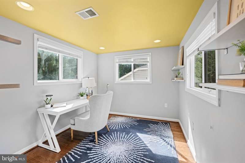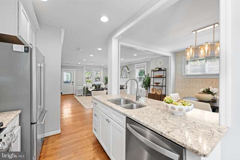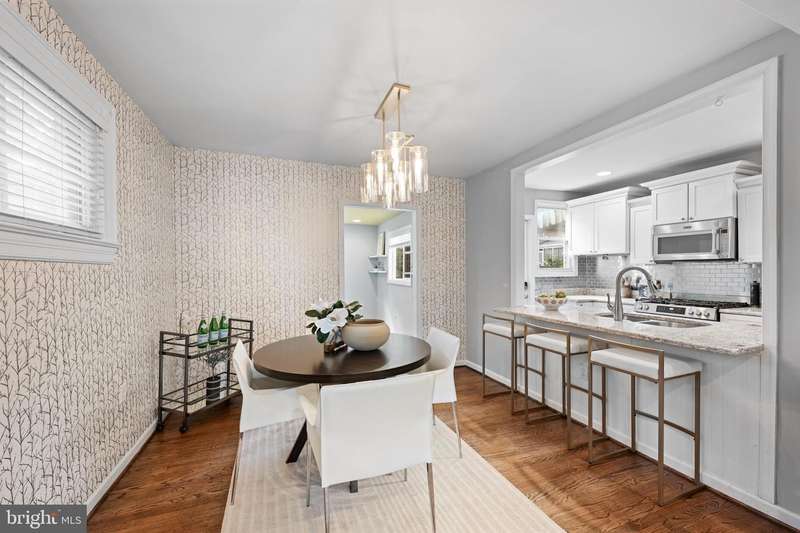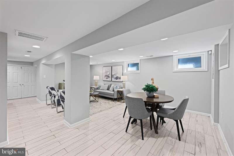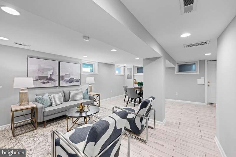 Charming Brookland End-Unit! This beautifully updated 3-bedroom, 2-bath home blends modern convenience with timeless appeal. Set on a large corner lot, the residence welcomes you with an idyllic, spacious front porch and a sun-filled living room featuring a brick-surround fireplace with classic mantel. Gorgeous hardwood floors flow throughout, leading to a formal dining area and an open galley-style kitchen with quartz countertops, stainless steel appliances, and a center island with breakfast bar seating. A dedicated main-level office offers the perfect work-from-home space or den/playroom. The upper-level has boasts 3 large bedrooms and a sleek hall bath with a double vanity and skylight. The completely finished lower level provides flexible space for a rec. room, play area, or additional living space, and includes a full bathideal for guestsas well as direct access to the rear yard. Parking is abundant with a two-car parking pad plus a detached garage. As an end-unit rowhome, this property offers extra light, privacy, and outdoor lawn space in front and back. Conveniently located within walking distance to the vibrant Monroe Market, and Brookland Metro, and multiple schools, playgrounds, and daycare centers, this home truly has it all. Please note: Square footage is estimated and calculated by an independent third party; information is deemed accurate but not guaranteed.