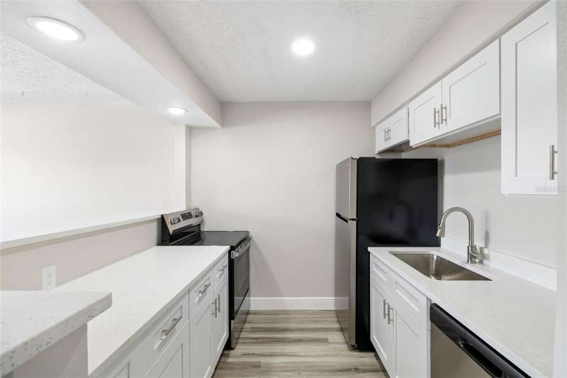 LOCATION-LOCATION-LOCATION!!!! NO other unit has the open kitchen like this remodel! Enjoy seeing breathtaking water views and sightings of Dolphin and Manatee that frequent the area right outside your back door. GO FISHING!! This FIRST FLOOR condo is BRAND NEW FROM TOP TO BOTTOM. BRAND NEW AC/HVAC AND HOT WATER TANK STUNNING NEW cabinets and Counters, BRAND NEW APPLIANCES. NEW flooring, paint, fans etc. Great open floor plan with the kitchen open to the great room with breakfast bar. Check out the size of the Primary bedroom with 2 closets The Tudor Cay community caters to all lifestyles, with an many amenities designed to enhance your living experience. Enjoy scenic picnic areas, and laundry facilities-steps away! ENJOY the fishing dock, lighted tennis court, two swimming pools, half-basketball court, racquetball court, and clubhouse equipped with a party room, pool table, and fitness center. The Condominium Association meticulously maintains the outdoor spaces and covers essential services such as sewer and water, ensuring a hassle-free lifestyle. Just 10minutes from Tampa International Airport, the Veterans Expressway, and 20 min to the area's pristine beaches,