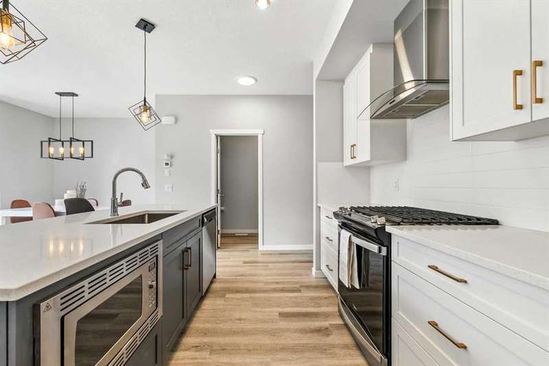 Welcome to your next chapter in the award-winning lake community of Mahogany, where resort-style living meets everyday convenience. This beautifully upgraded home is located on a quiet, family-friendly street - complete with neighborhood Stampede breakfasts and kids playing outside! It has easy access to 88th Street (avoid those roundabouts), the Urban Village amenities, and access to Calgary’s largest freshwater lake! Step inside to a large welcoming foyer that opens to soaring 9’ ceilings and a bright, open-concept main floor. The heart of the home features a gourmet kitchen with an upgraded appliance package including a gas range, high-end fixtures, a walk-through pantry, and full-height cabinetry with soft-close drawers. The spacious dining and living areas flow seamlessly together, creating the perfect setting for entertaining or everyday family life. While the large west-facing backyard extends your living space outdoors - fenced, landscaped, and all ready for you. A stylish half powder room completes the main floor. Upstairs, the design truly shines with a central bonus room that separates the primary suite from the secondary bedrooms. This thoughtful layout gives everyone their own space while keeping the family connected. The primary retreat feels like a private getaway, featuring a spa-inspired ensuite with a rain shower head, tiled tub, double vanity and upgraded medicine cabinet. The kids’ bedrooms, located on the opposite side of the bonus room, are bright and generously sized, with easy access to the full bath. This home is built with lasting quality in mind, featuring a high-efficiency furnace, 50-gallon hot water heater, programmable thermostat, spray foam insulation and energy-efficient, low-E double-glazed windows. The basement is framed and insulated with a large egress window and bathroom rough-in, offering excellent development potential. Additional features include an oversized double attached garage, Decora switches and plugs, LED lighting throughout, and upstairs laundry room with floor drains for convenience. Every detail has been carefully considered, from brushed chrome hardware and modern-profile casings to the ceramic tile backsplash and full-width vanity mirrors. This is more than a house - it’s a lifestyle. Living in Mahogany means four-season recreation right at your doorstep: swimming, skating, fishing, paddleboarding and beach days with family and friends, all while enjoying nearby schools, shops and restaurants. Welcome Home.