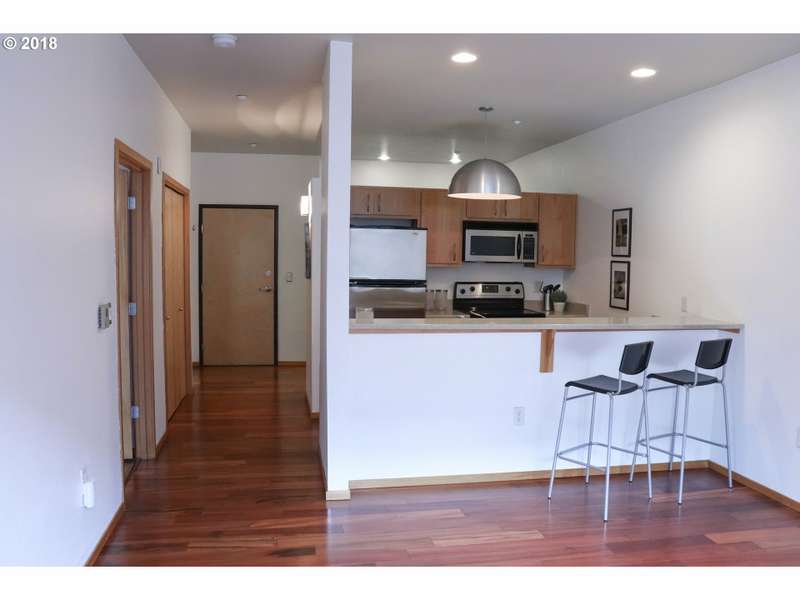 Lovely unit in the well-located Lexis Condominiums. Gorgeous morning light - Easy urban living in a secure building with elevator. Right-sized terrace to enjoy the fresh air, grill some dinner and watch the world go by. Remodeled bath, one true bedroom plus den/office. (you could add a murphy bed for guests) Bright, open kitchen to living area with beautiful floors, eating bar, stainless appliances. Washer and dryer in-unit. One garage parking space and one storage unit.This is an unbelievable value-priced condo ready to go! It's in great shape and well located, right in the Pearl District on the streetcar line, across from the park, fantastic coffee, restaurants, shopping and all the fun options in the Pearl.Tenant occupied until September - property manager accompanies all showings but it easy to schedule!