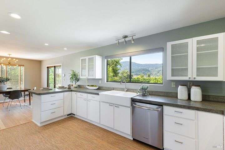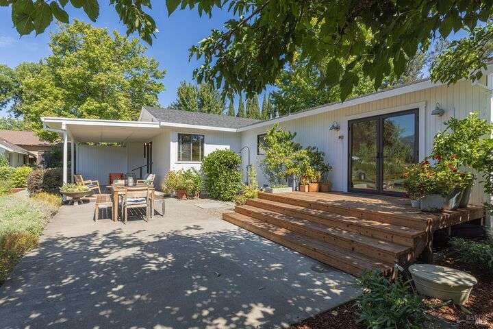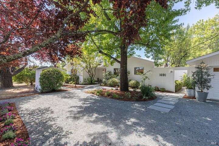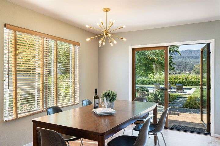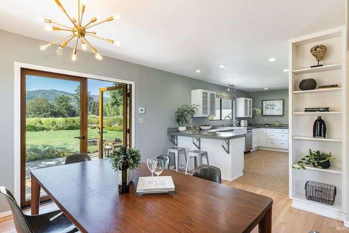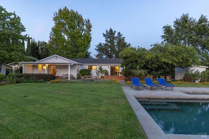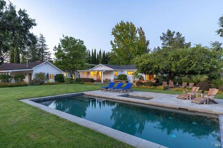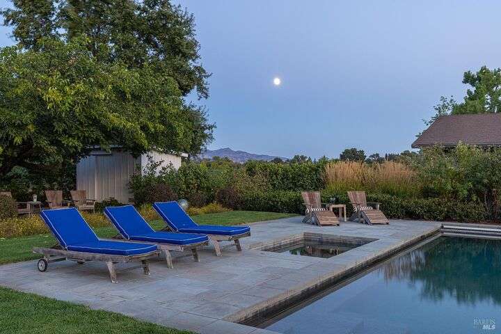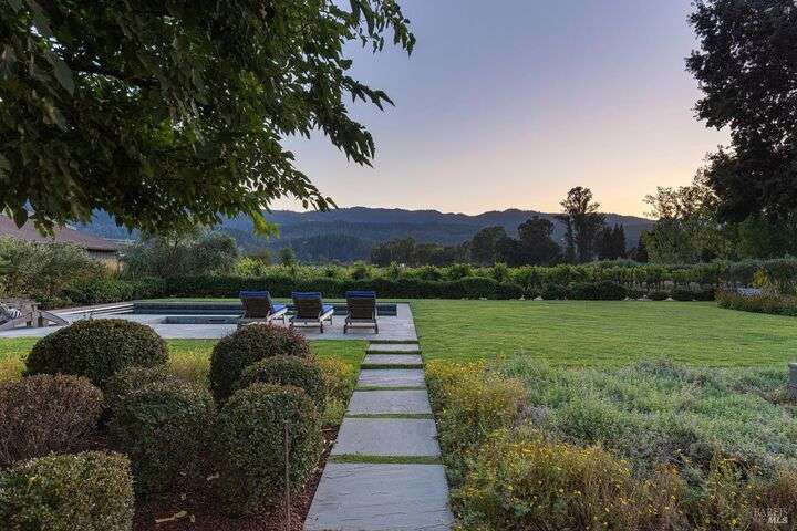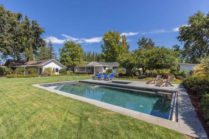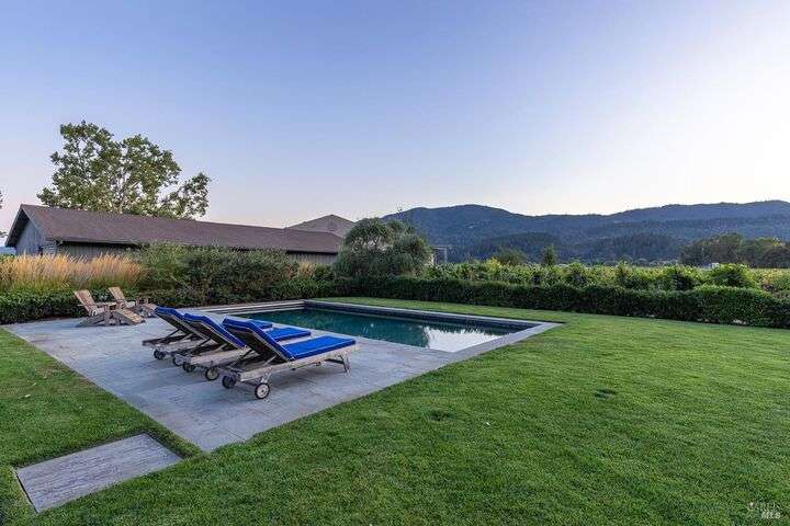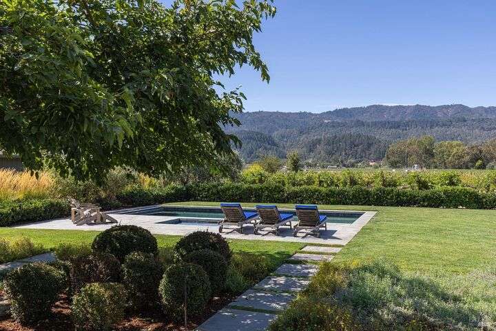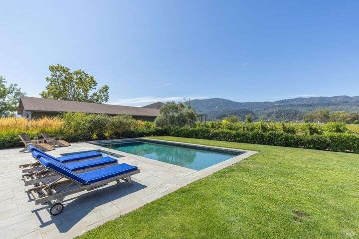 Vineyard views and wine country living at your own enchanting retreat on the Napa Valley floor! This very private oasis boasts of light-filled interiors, inviting outdoor spaces, a verdant lawn, fruit trees, and a sparkling swimming pool with spa...all overlooking acres and acres of grape vines and the majestic Mayacamas Mountain Range, which define the geography and vistas of Up Valley Napa. Approximately 2/3 of an acre planted to Cabernet Sauvignon, yielding about 2 tons of grapes annually. All of this incredible escape is minutes from Napa Valley's finest dining, a short hop north to Saint Helena, a bit further to Calistoga, and south through Rutherford to Yountville and the city of Napa.