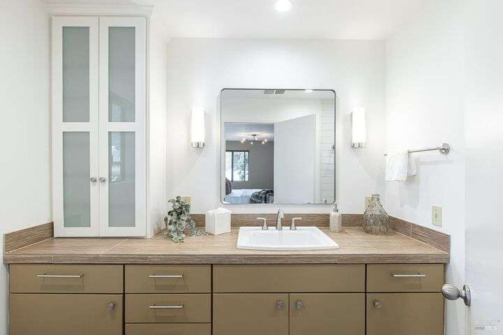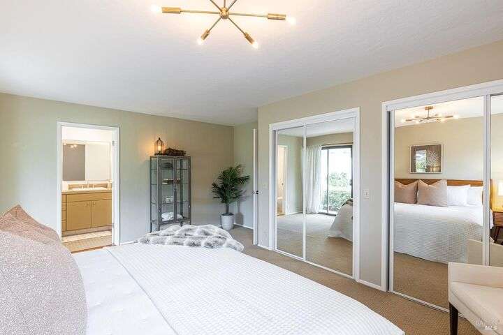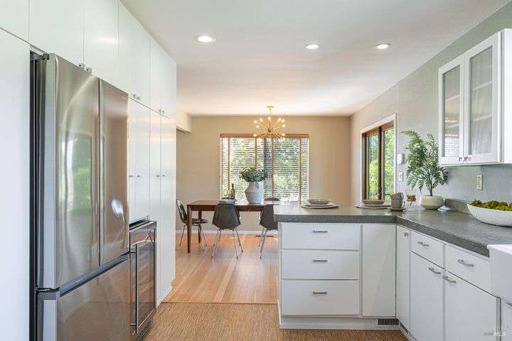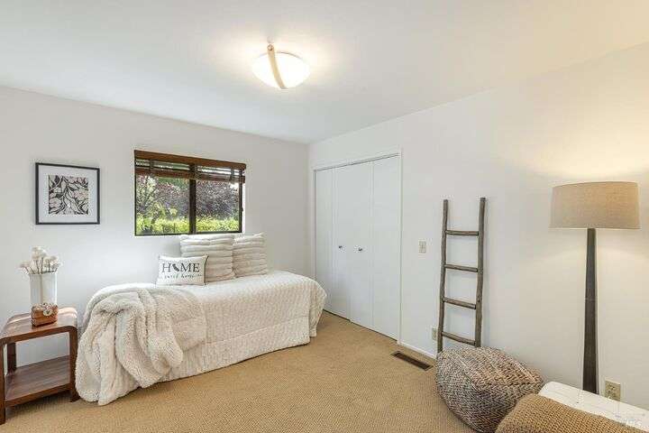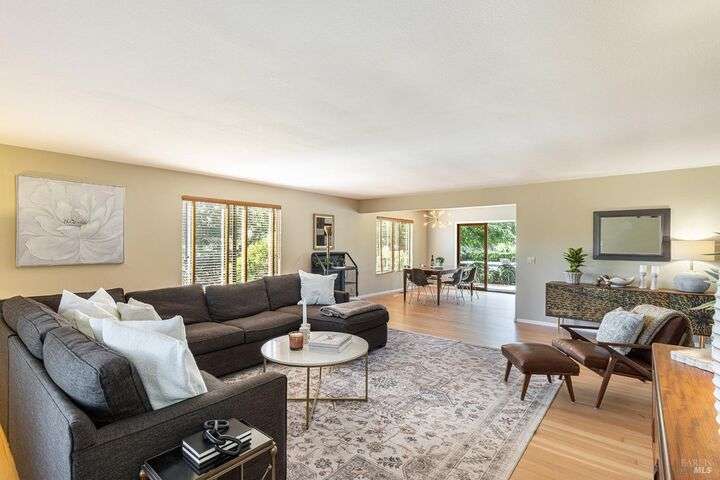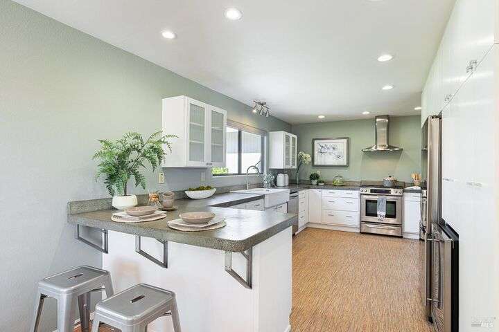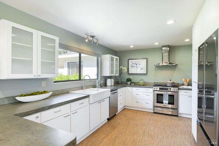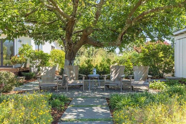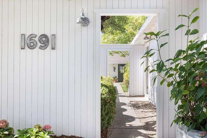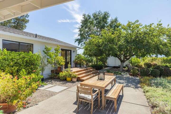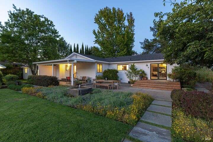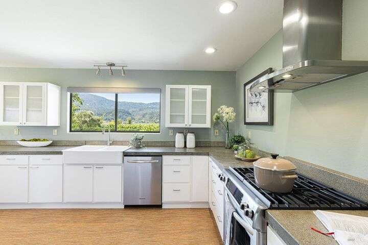 Vineyard views and wine country living at your own enchanting retreat on the Napa Valley floor! This very private oasis boasts of light-filled interiors, inviting outdoor spaces, a verdant lawn, fruit trees, and a sparkling swimming pool with spa...all overlooking acres and acres of grape vines and the majestic Mayacamas Mountain Range, which define the geography and vistas of Up Valley Napa. Approximately 2/3 of an acre planted to Cabernet Sauvignon, yielding about 2 tons of grapes annually. All of this incredible escape is minutes from Napa Valley's finest dining, a short hop north to Saint Helena, a bit further to Calistoga, and south through Rutherford to Yountville and the city of Napa.