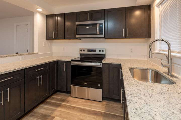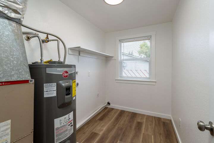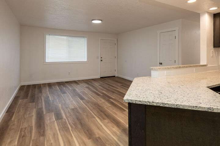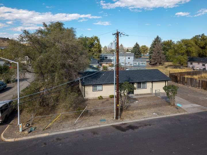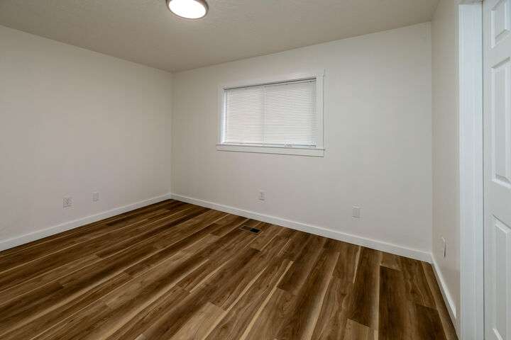 Nicer than new single level ranch style home with a great room layout on a large corner lot with RV parking. The entire structure has been fixed and retouched; the roof, exterior paint, interior paint, cabinets, appliances, water heater, fixtures, counters, and floors are all brand new. Once inside the front door you are greeted by a great room layout with excellent natural lighting. Luxury vinyl plank flooring is installed throughout. Granite counters, custom black cabinets, a single bay sink, ample lighting, and very nice stainless appliances highlight the great room space. The primary bedroom connects to the large single bathroom with brand quartz counter vanity, toilet, and shower. Both guest bedrooms are nicely sized and on the opposite side of the home from the primary. The attached single garage is oversized and fully insulated. Outside you'll find an attached storage shed, a fenced yard, and a covered back patio!
