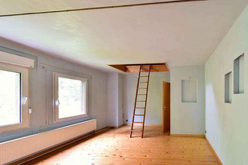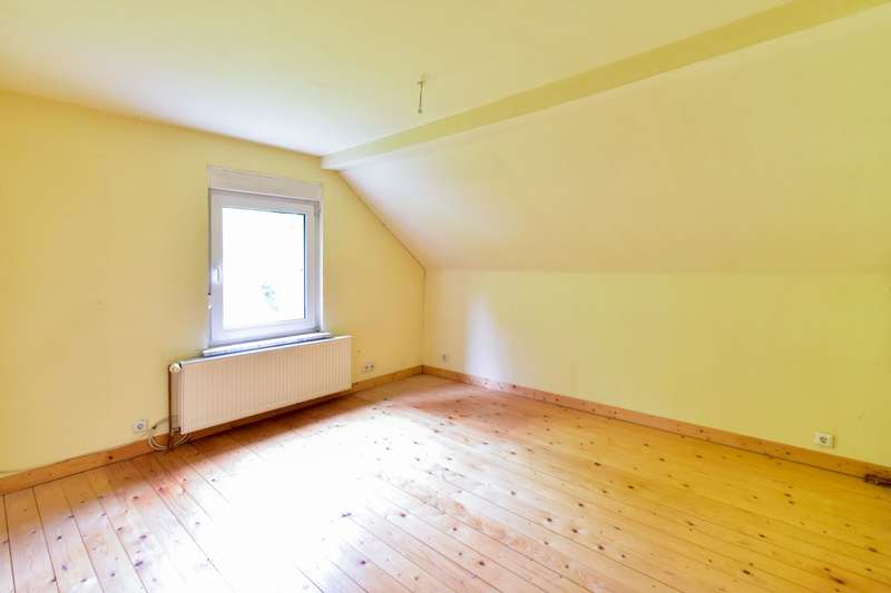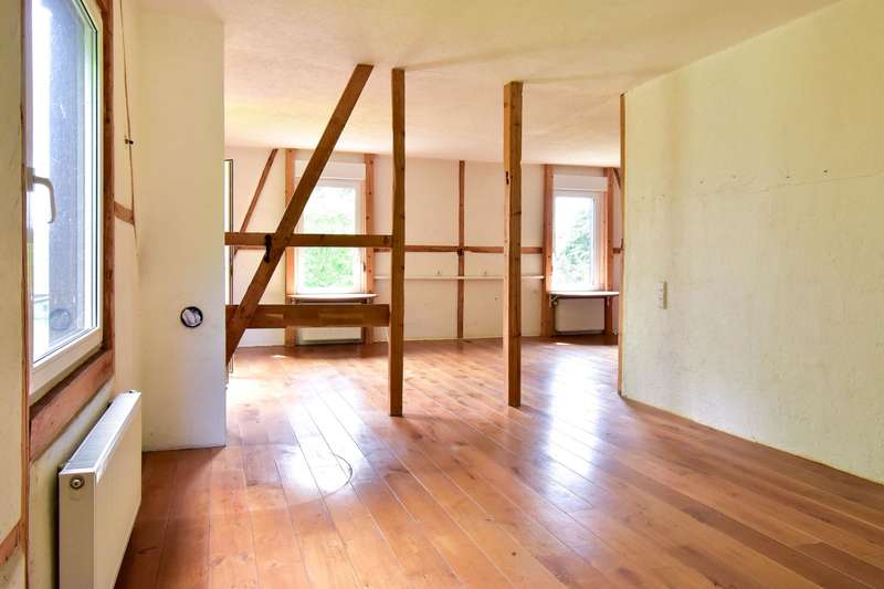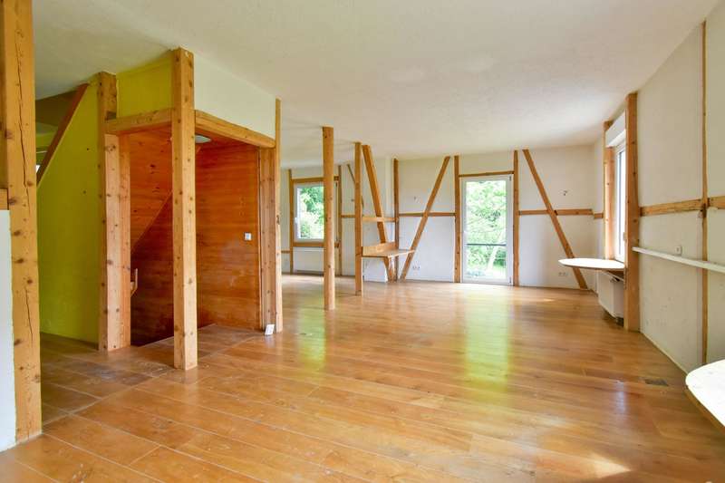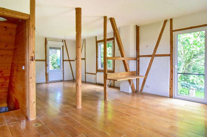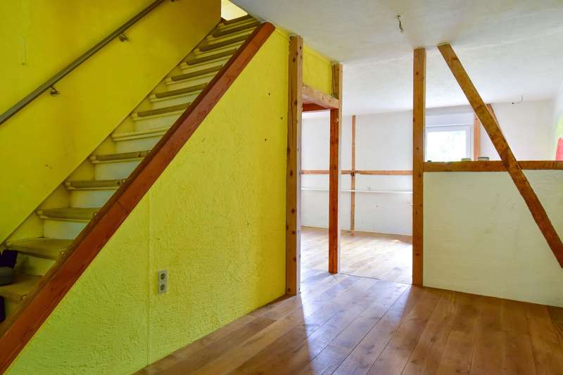 Welcome to a truly unique property with history and character: this charming semi-detached house from the turn of the century boasts lovely half-timbered elements, a special room layout and a wonderful view of the countryside. The house is situated on a slope and offers space for individual living dreams on several levels - ideal for anyone who is looking for something special and is ready to tackle a comprehensive modernization. Living with a view: On the first floor, you will find a spacious, open-plan living and dining area that leads directly onto the balcony. The half-timbered elements give the room a cozy and authentic atmosphere. Adjacent to this is the separate kitchen area - with enough space for a modern fitted kitchen. The cozy atmosphere of the old building can be wonderfully combined with modern elements. Retreats in the attic: The top floor houses three rooms that can be used flexibly as bedrooms, offices or children's rooms. The bathroom is impressively spacious and is equipped with a bathtub and separate shower. A ladder leads from the master bedroom to the attic - a charming extra that can be used as an attic studio, gallery, reading corner or storage space. More space in the basement: A real highlight is the large, bright multi-purpose room in the basement with direct access to the terrace and the idyllic garden. Whether as a fitness/wellness area, studio or with the installation of a summer kitchen - there are a variety of possible uses here. An additional bathroom rounds off the space on this level. Idyllic garden with distant views: The lovingly landscaped garden not only offers peace and relaxation, but also an impressive far-reaching view of the Ruhr Valley. Here you can enjoy pure nature - whether having breakfast outdoors or gardening in the afternoon sun. Access and parking facilities: The property includes a carport and an additional parking space in front of it. A right of way leads from the carport to the property. This makes the semi-detached house easy to reach. Modernization & potential: The house is in need of renovation and therefore offers plenty of scope for design. With creative ideas, a very personal dream home can be realized here - full of charm, character and history. Conclusion: A house with soul, waiting for people who appreciate its special flair and are ready to let it shine in new splendor. Ideal for families, creative minds or individualists who love the original and know how to use the potential of an old building. We would be delighted to show you this special property in more detail during a personal viewing. We look forward to your inquiry!