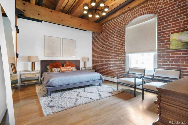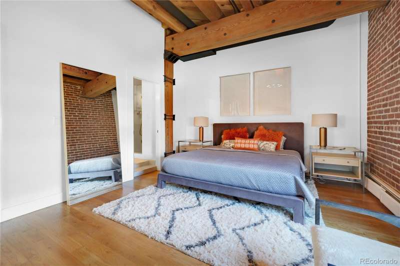 Bold, chic, and extraordinary, this historic corner loft offers two stunning bedroom suites and a layout designed for both comfort and style. Its expansive floor plan and sophisticated finishes make it truly one of a kind. Just minutes from Union Station, McGregor Square, and Coors Field, youll enjoy Denvers finest dining, shopping, and entertainment right outside your door downtown living at its absolute best. Inside, dramatic details abound with heavy beams, rich timber, exposed brick, and designer lighting that create a chic and timeless backdrop. The entryway showcases fabulous art walls leading into a great room framed by windows that fill the space with natural light. The chefs kitchen is a true showpiece, featuring a large island with seating, open shelving, and premium stainless-steel appliances. The primary suite boasts exposed brick, a spacious walk-in closet, and a luxurious bath with dual sinks and a walk-in shower. The secondary suite offers its own walk-in closet and a beautifully finished en-suite bath, ideal for guests. A dedicated laundry room with a stackable washer and dryer adds convenience. Also includes a deeded parking space just across the street at Icehouse Condos.