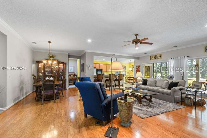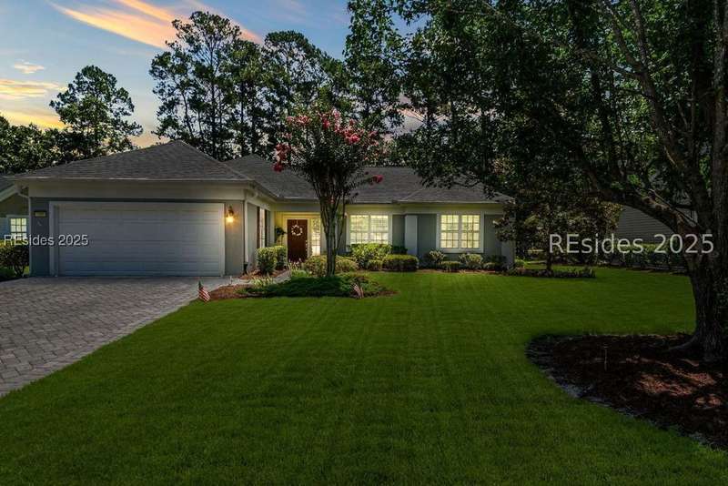 Charming Dogwood Model on the 5th Tee of Hidden Cypress. Nestled across from a serene eyebrow and perfectly positioned on the 5th hole of the Hidden Cypress Golf Course, this meticulously maintained Dogwood model offers the best of active adult living in Sun City Hilton Head. Enjoy sweeping views from the tee box down the fairway without the worry of golf balls in your yard! This light-filled 2-bedroom + den home features hardwood flooring throughout the main living areas, an open-concept great room and dining area, and a cheerful lanai ideal for morning coffee or evening cocktails overlooking the course. The spacious kitchen will delight any home chef with its granite countertops, center island, pull-out shelving, and generous cabinetry. The primary suite features a bay window with golf views, a large walk-in closet, and a bath with dual vanities, soaking tub, and separate shower. Additional highlights include: Extended garage with pull-down attic stairs for extra storage. Newer systems and lovingly cared-for interiors. Close proximity to Hidden Cypress Clubhouse, pool, fitness center, softball field, pickleball courts, and Sun City's famed woodworking shop. Whether you're downsizing or ready to enjoy the Sun City lifestyle to the fullest, this home checks all the boxes for comfort, convenience, and community.