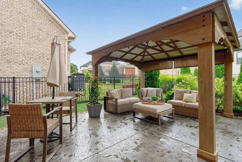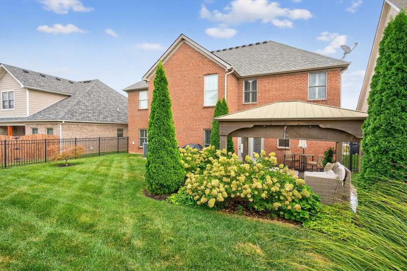 Elegant 2 story home offers beautiful curb appeal with lush landscaping and lovely covered front porch. Enter the 2-story foyer leading to beautiful entertaining area with stunning dining room, butlers bar, and the impressive open great room with coffer ceiling, stone faced fireplace with gas logs. Dream kitchen offers all stainless appliances, gas cooktop, beautiful bar and breakfast area. Spacious 1st floor guest or primary suite with large full bath that offers nice soaking tub, walk-in tile shower, double bow sink & walk in closet! Hardwood flooring through out 1st floor, custom made shutter blinds through out home & wrought iron spindles for stairs. Exterior front finishes w/ copper flashing, under eve lighting, stone accents, pillar columns & more. You'll enjoy the beautiful fenced backyard that offers a large attached gazebo for everyone's enjoyment. Easy access to all that Hamburg has to offer, dining, YMCA , shopping, movie theater, convenient to I-75. Come and see what all this home and The Tuscany neighborhood has to offer.