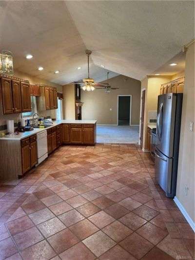 This ranch boasts 5 Bedrooms and 3 full baths on a walkout basement with a 3-car garage...There is a cathedral ceiling, gas fireplace, and 2 laundry areas. There is a kitchen in the basement with 2 bedrooms, one with a walk-in closet and a full bath. There is access to the basement from the garage. There is a deck off the back with a retractable awning. Recent updates include new garage doors and openers '25, garbage disposal downstairs, and all tile and carpets cleaned ... Appliances stay along with washer and dryer, 4400 sq ft total.