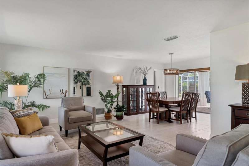 Under contract-accepting backup offers. One or more photo(s) has been virtually staged. Welcome to 3724 Calliandra Drive, located in the desirable Glen Oaks Country Club Estates. This 3-bedroom, 2-bathroom pool home features a split floor plan across 2,019 sq ft of living space. The home has been substantially updated and lovingly maintained, including an updated kitchen and bathrooms, new tile flooring, impact windows, and a newer roof (2019). The property offers an ideal layout with two main living areas that both open to the screened lanai and pool perfect for entertaining and enjoying the indoor/outdoor Florida lifestyle. The spacious primary suite features his-and-hers closets and a large walk-in shower. Additional highlights include a 2-car garage and an oversized laundry room with abundant storage. Situated on a generously sized lot, fully fenced with mature landscaping and a beautiful garden providing both privacy and charm. Ideally located to enjoy everything Sarasota has to offer from the shops and restaurants of University Town Center to the boutiques and dining of St. Armands Circle, the arts and culture of downtown