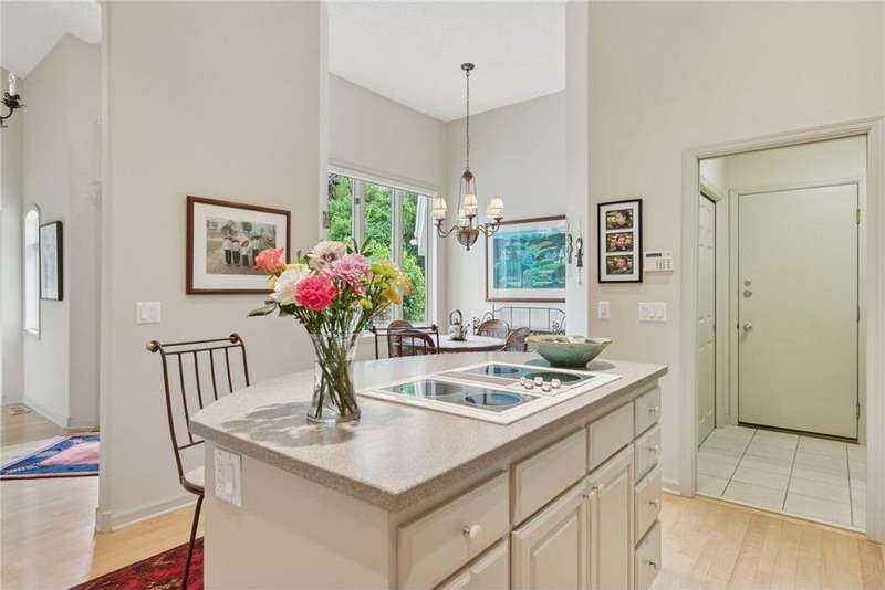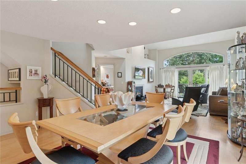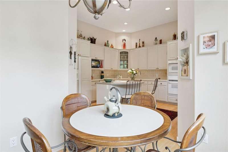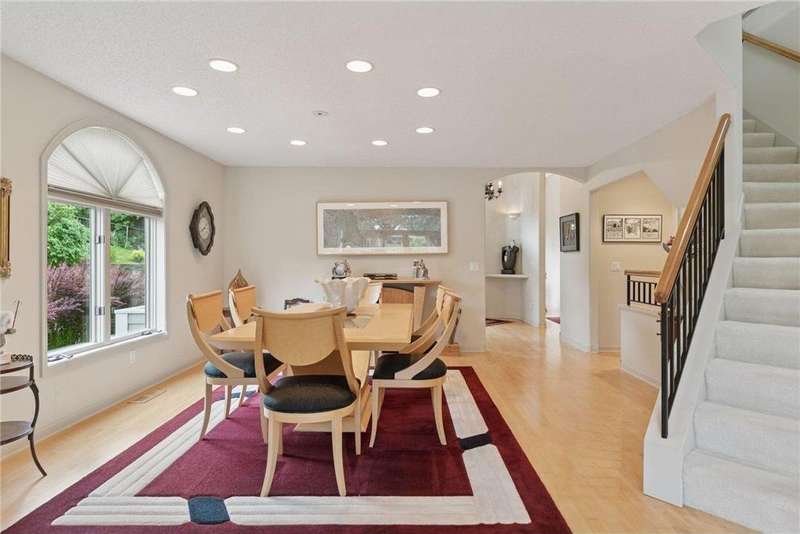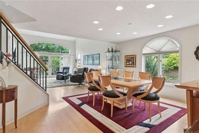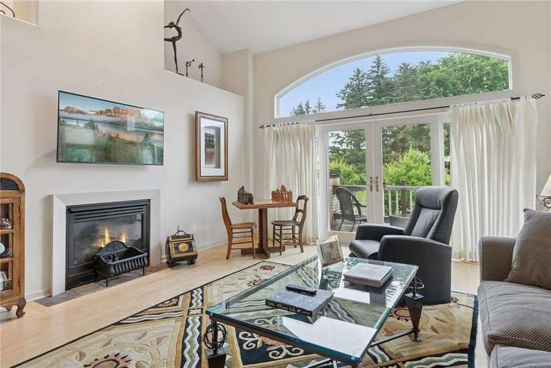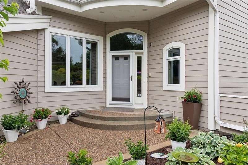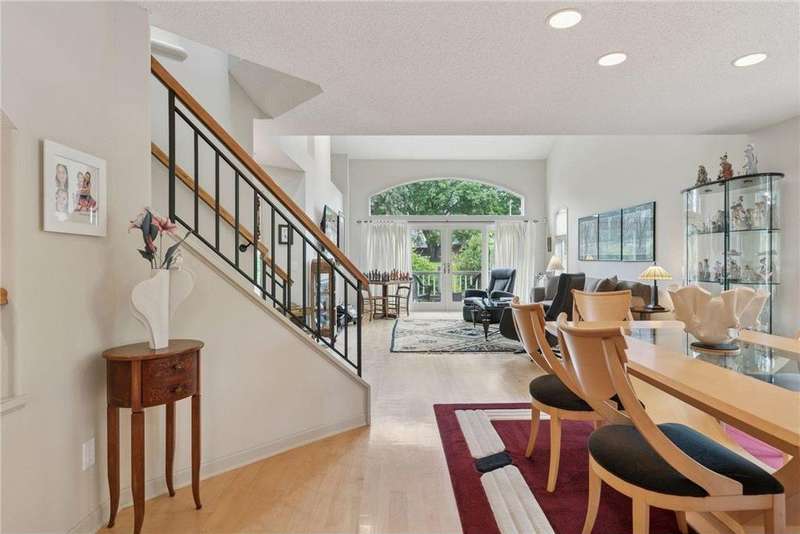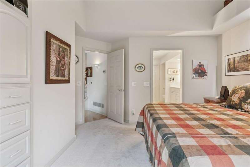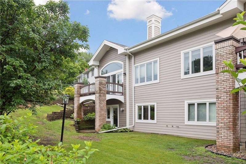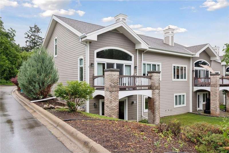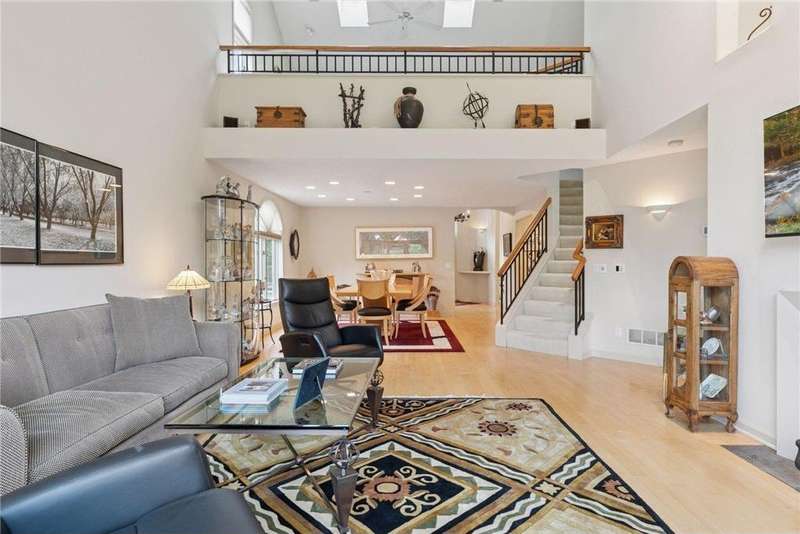 Immaculate 1994 Twin Home with Vaulted Ceilings and Spacious Layout Step into this beautifully maintained twinhome/townhome featuring soaring vaulted ceilings and a versatile lofted upper level. Fresh, neutral decor complements gleaming maple hardwood floors throughout the main living areas. The custom kitchen is a standout with a center island, eat-in space, and stylish finishes—perfect for everyday living and entertaining. The expansive primary suite offers a spa-like tiled walk-in shower, a generous walk-in closet, and plenty of natural light. Enjoy the outdoors from the maintenance-free deck adorned with elegant brick pillars. Upstairs, the lofted family room features vaulted ceilings, skylights, upper level bedroom with 3/4 tiled bathroom, creating a bright and inviting secondary living area. The fully finished lower level adds over 1150 square feet of additional living space, including a large family room, a third bedroom (currently used as an office), a 3/4 bath with luxurious steam shower, an exercise room, a finished storage area, and a walk-out patio—ideal for relaxing or entertaining. This thoughtfully designed home offers comfort, style, and flexibility on every level. A must-see!