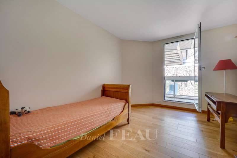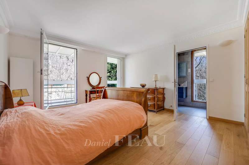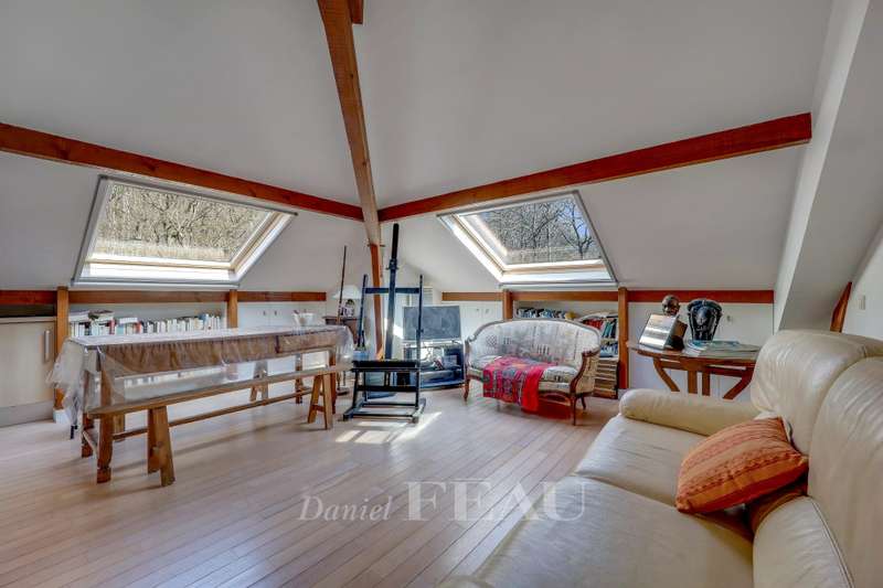Sole Agent. This bright and very well-maintained duplex apartment on the 4th and top floors of a luxurious co-ownership with a caretaker is in excellent condition. Offering 239 sqm of renovated floor space and 186 sqm of living space as defined by the Carrez Law, it includes a spacious living/reception room opening onto a continuous balcony enjoying an open view, a kitchen also accessing the balcony, a peaceful master suite with a shower room and wc opening onto a balcony, a second bedroom and a guest wc. Upstairs a landing leads to a family room or possible bedroom, three spacious bedrooms, a dressing room, a bathroom and a wc. With two basement parking spaces and a cellar. Home automation, excellent insulation, double glazing, solid oak parquet flooring. The residence is in a peaceful location on the edge of Fausses Reposes state forest and benefits from 6000 sqm shared grounds. Under 10 minutes by foot from the station and the amenities.