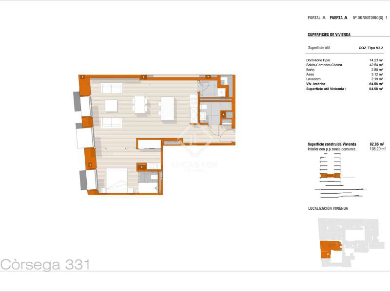 Corcega 331 is a very special new development located next to the prestigious Passeig de Gracia and Avinguda Diagonal, two of Barcelona's most popular and important boulevards, home to many architectural marvels and an abundance of services, restaurants and high-end shops. This building, with an attractive façade, has undergone an ambitious refurbishment project which has resulted in contemporary, avant-garde interiors with state-of-the-art materials by brands such as Gunni&Trentino, green areas and all modern urban comforts, making it a true oasis at the heart of the city. Parking spaces are provided in the same building and the ground floor provides exceptional communal facilities, including a gym, spa, pool, a lounge and a coworking area. The development offers this exquisitely finished brand-new home with an open-plan living room, dining room and kitchen, 1 bedroom and 2 bathrooms. These spacious, light-filled homes feature open-plan living spaces with modern, functional kitchens. The bedrooms have been designed to maximise comfort and peace, for a good night's sleep and the bathrooms are finished with elegant, high-end materials, fixtures and fittings. Please contact us for further information regarding this outstanding new residences with excellent communal facilities, in an enviable location in the city.