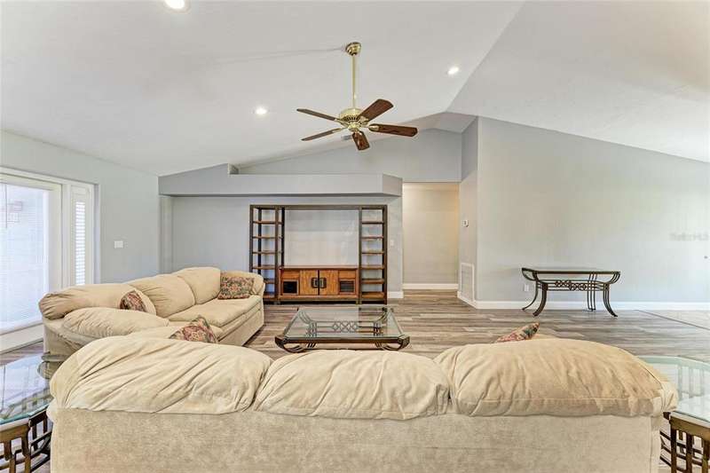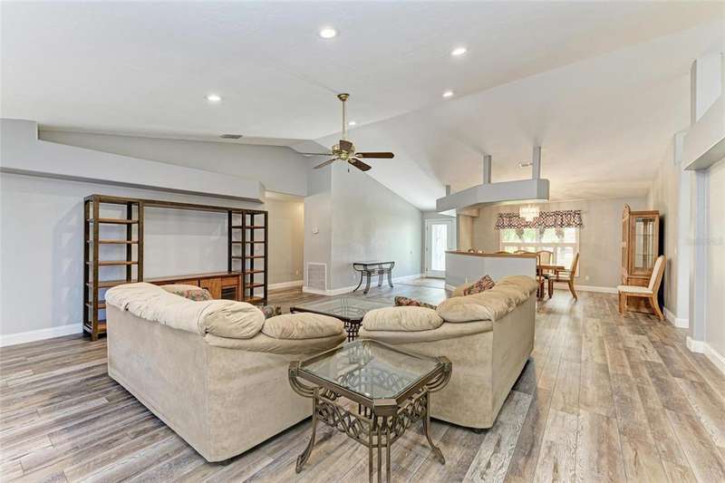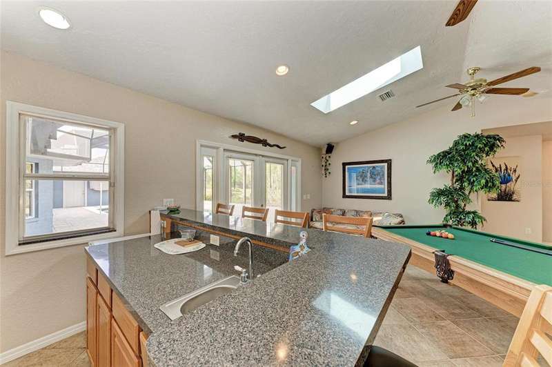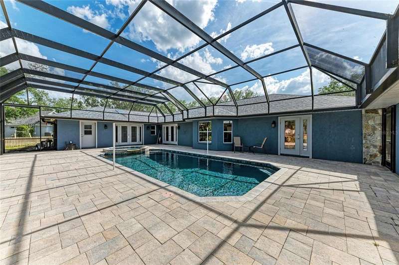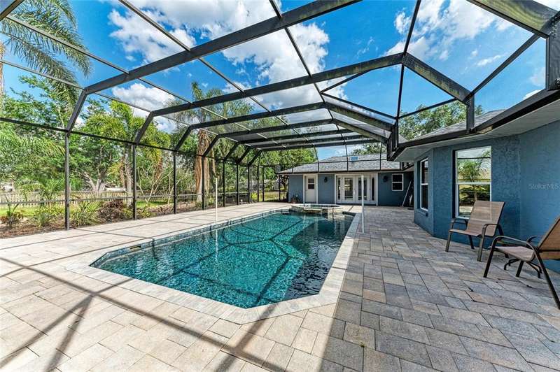 5 Car Garage + Attached In-Law Suite + Sparkling Pool! Spanning over 3,400sqft, this custom pool home sits on 0.78 acres in the highly desirable Mill Creek community and boasts an attached in-law suite that also makes a great game room, plus an oversized 3-car attached garage AND an additional detached 2-car garage. As you step inside the home, you are greeted with vaulted ceilings and a large family room that seamlessly connects to the dining room and kitchen with French doors opening to the pool which makes the perfect combination for hosting memorable gatherings. The newly renovated kitchen that spans 27ft is an entertainer’s dream - complete with custom cabinetry, a massive center island, stainless-steel appliances, stone counters, walk-in pantry, informal dining area and storage galore! The primary suite offers a private sanctuary with spacious dual closets and direct access to the sparkling pool. The spa-like ensuite bath features a new vanity with dual sinks, a garden tub for relaxing, walk-in shower and door leading to the laundry room for added convenience. Two additional bedrooms sit on the opposite side of the house, both with walk-in closets, and sharing a guest bathroom with a newly updated vanity. The office/den could be used as a fourth bedroom and features wall cabinets for storage. On the back of the house sits a huge game room that boasts a wet-bar/kitchenette, French doors that open to the screened pool area, a third full bathroom with pool access and a pool table. This extra space can be used as an in-law suite, teen hang-out space, or as the ultimate entertaining room! The fully screened pool area spans the entire rear of the home, connected to both the additional 2-car garage/workshop and to the game room/in-law suite. This paver lanai is nothing short of spectacular, with a saltwater heated pool, relaxing spa and views of the landscaped backyard. While the home was built for family gatherings and entertaining, the garages were designed for car enthusiasts and hobbyists. The attached 3 car garage is oversized and features air conditioning, electrical, large sink, running water, and a storage closet in the 3rd bay. The additional, detached 2-car garage also features AC, electrical, and water plus includes an additional large room on the back that could be used for storing holiday decorations, business supplies, or made into an office. The many uses for this garage space is endless so let your imagination soar! Additional features of this home include new luxury vinyl plank flooring, new paint, new roof 2020, whole-home generator that powers the house during outages, solar heat for the pool, fenced-in area in the backyard for pets, deep well for irrigation, and a spacious laundry room. This home sits high and dry and is not located in a flood zone. The community of Mill Creek is coveted for its private and oversized lots, outstanding schools, no CDD and a low HOA of only $538 per year. If you have been looking for a home that gives you so many options to spread out and customize the space to best fit your needs, then I invite you to come explore this truly one-of-a-kind home! Check out the 3D virtual tour too!