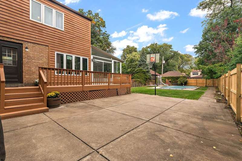 Welcome to this exceptional 4,500 sq. ft. home nestled on a picturesque, tree-lined street in Oak Lawn's coveted Little Beverly neighborhood-known for its warm community feel and Blue Ribbon schools. This spacious residence offers 3-4 bedrooms and 2.5 baths, blending timeless character with modern comfort. The bright, expansive living room features a beautiful brick fireplace and gleaming hardwood floors that flow throughout the main and second levels. Enjoy a formal dining room and large eat-in kitchen ideal for family gatherings. The inviting family room opens to a sunroom, deck, and stunning backyard retreat. Work from home in your dedicated office, and enjoy the finished walk-out basement with recreation room and full bath. The impressive fenced yard includes two patios, a deck, basketball hoop, and sparkling in-ground pool-perfect for entertaining or relaxing. Additional highlights include a 3-car brick garage with two extra parking spaces. Prime location near Metra, parks, library, schools, hospital, downtown Oak Lawn's shops and restaurants, and easy access to I-294. Come view today-this could be your HOME!