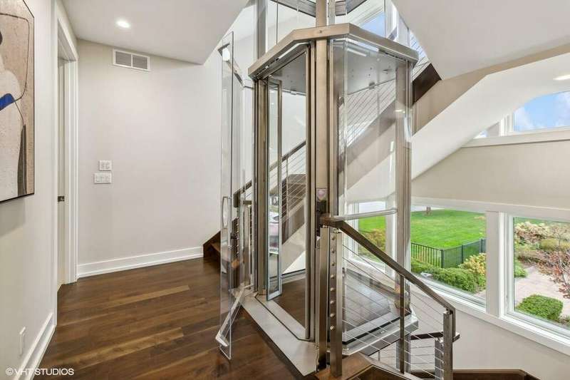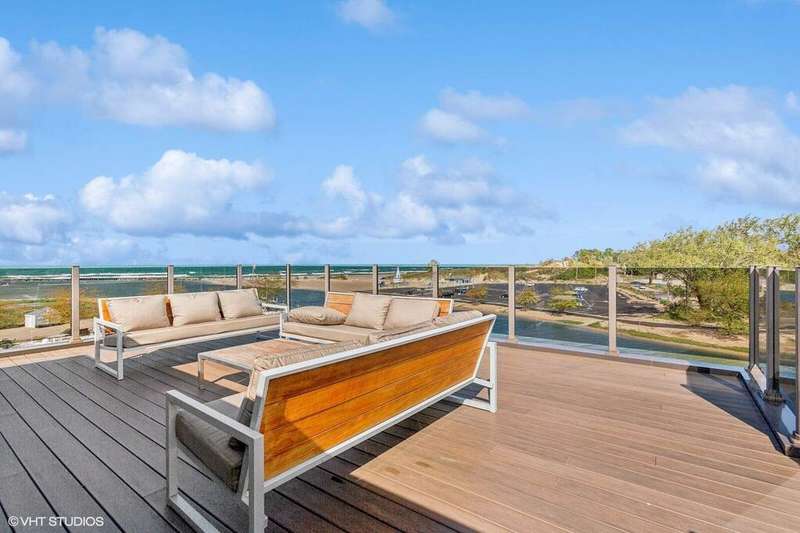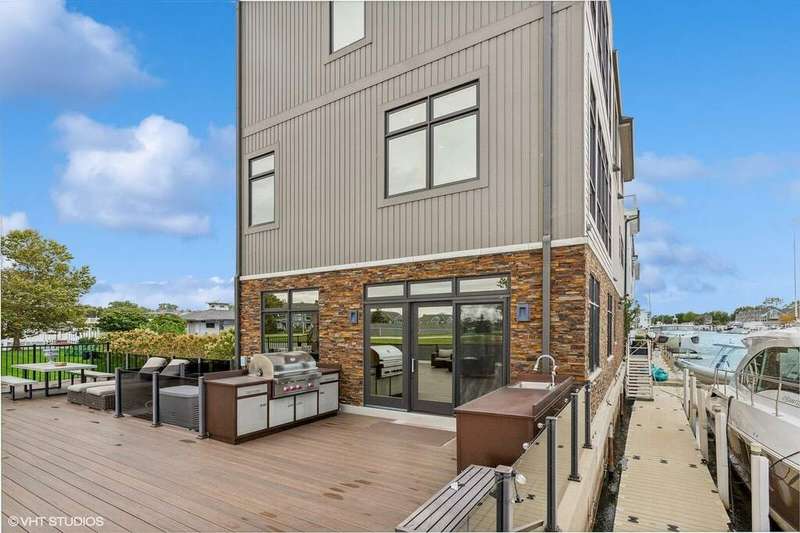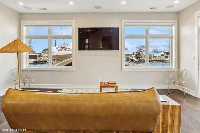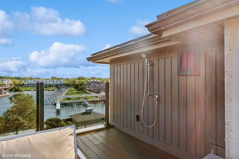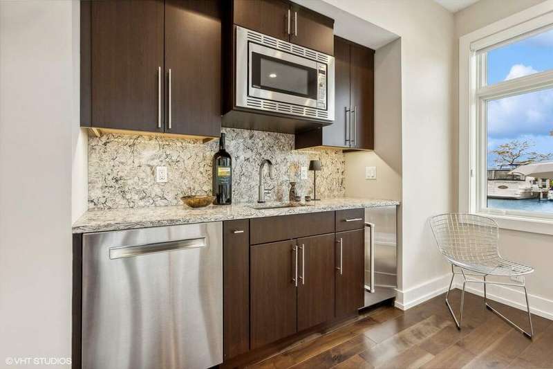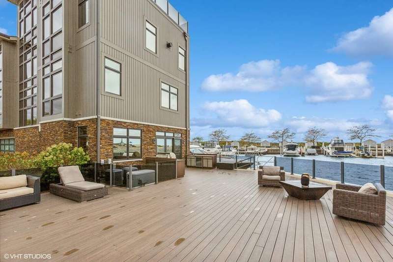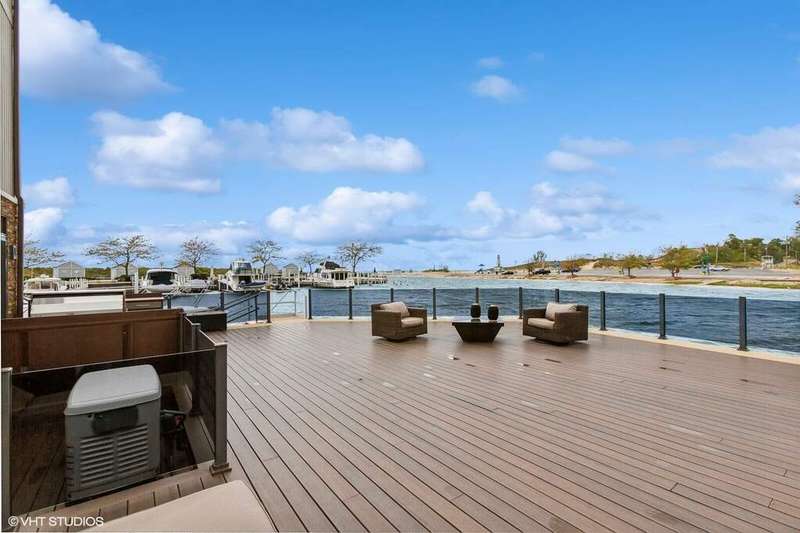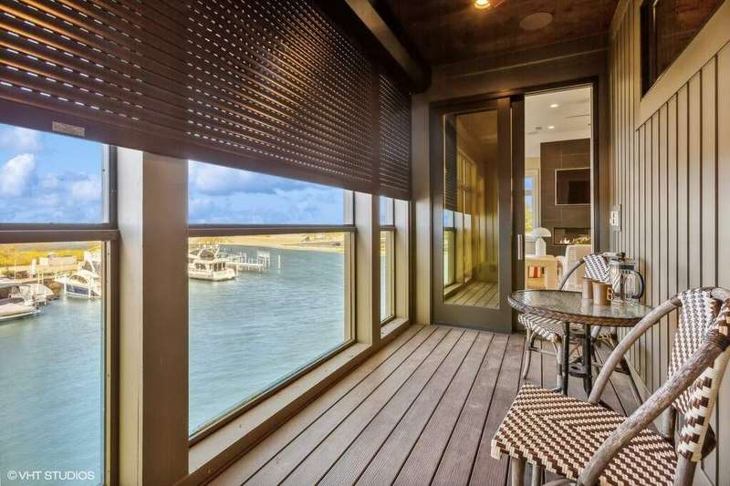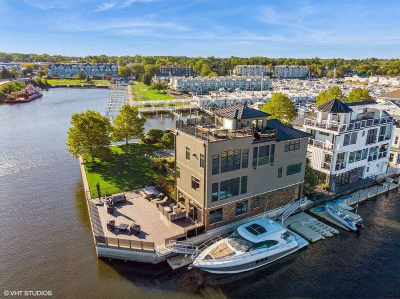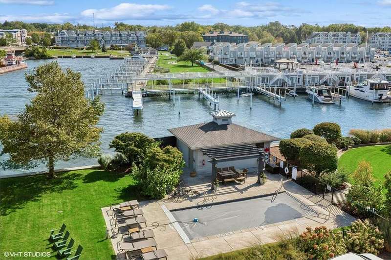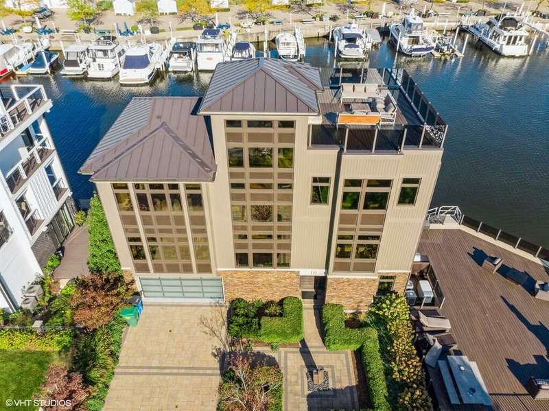 The Show Stopper: Now available, this unique contemporary mansion located at the penultimate location. Your private and exclusive peninsula at the intersection of Lake Michigan, the Michigan Yacht Club, New Buffalo Harbor, and the Galien River. Dock your yacht and wave runners right next to your party pad. This home spans four levels, with panoramic and breathtaking views. A glass elevator adds style and convenience. The third floor, featuring a state-of-the-art kitchen and spacious living area, is perfect for year-round entertaining. The infinity deck is a host's dream, the ideal backdrop for any event. Stroll to fine dining and end your evening on the rooftop deck, enjoying a fire and unparalleled views of Lake Michigan sunsets.