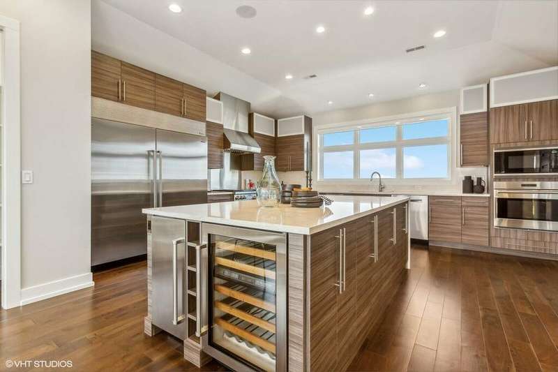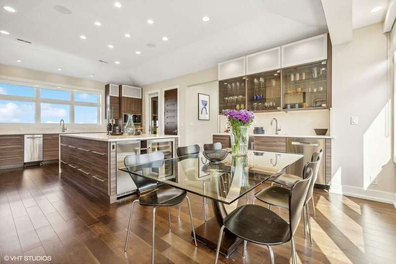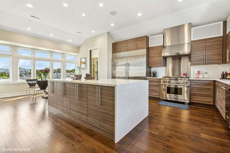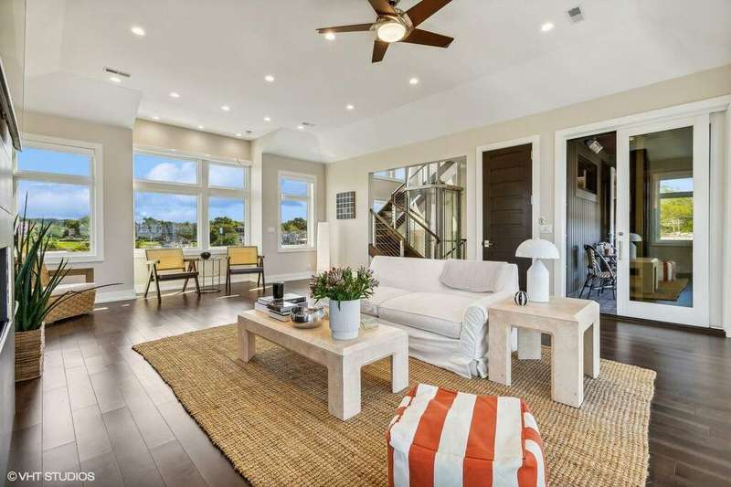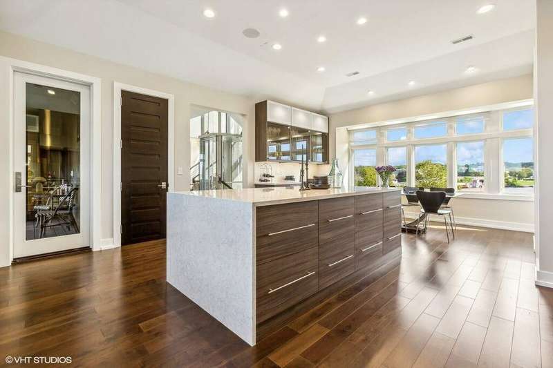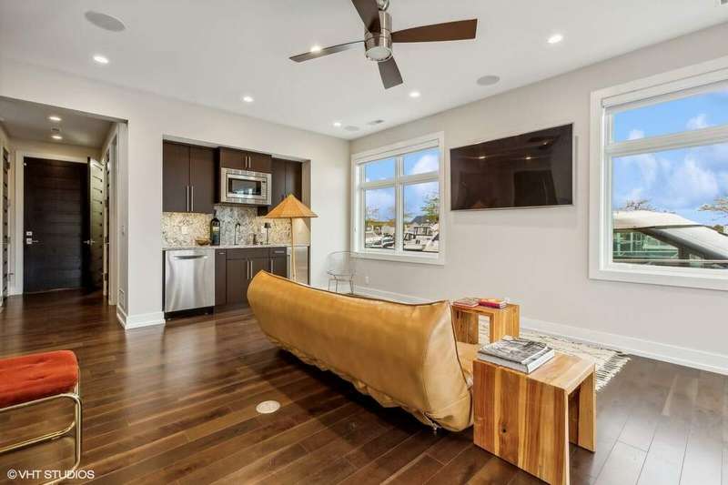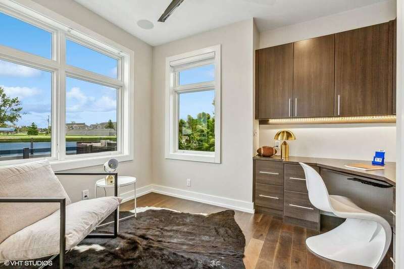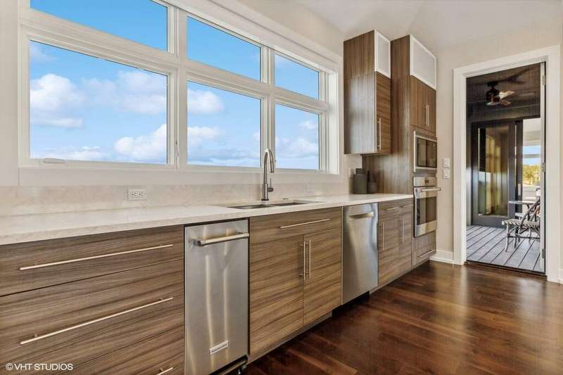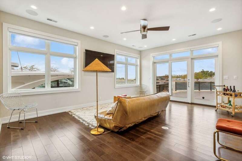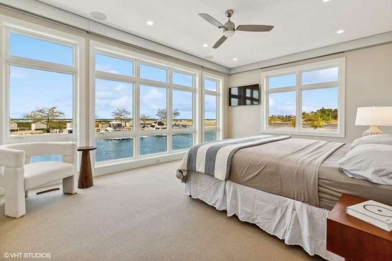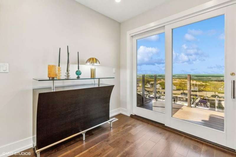 The Show Stopper: Now available, this unique contemporary mansion located at the penultimate location. Your private and exclusive peninsula at the intersection of Lake Michigan, the Michigan Yacht Club, New Buffalo Harbor, and the Galien River. Dock your yacht and wave runners right next to your party pad. This home spans four levels, with panoramic and breathtaking views. A glass elevator adds style and convenience. The third floor, featuring a state-of-the-art kitchen and spacious living area, is perfect for year-round entertaining. The infinity deck is a host's dream, the ideal backdrop for any event. Stroll to fine dining and end your evening on the rooftop deck, enjoying a fire and unparalleled views of Lake Michigan sunsets.