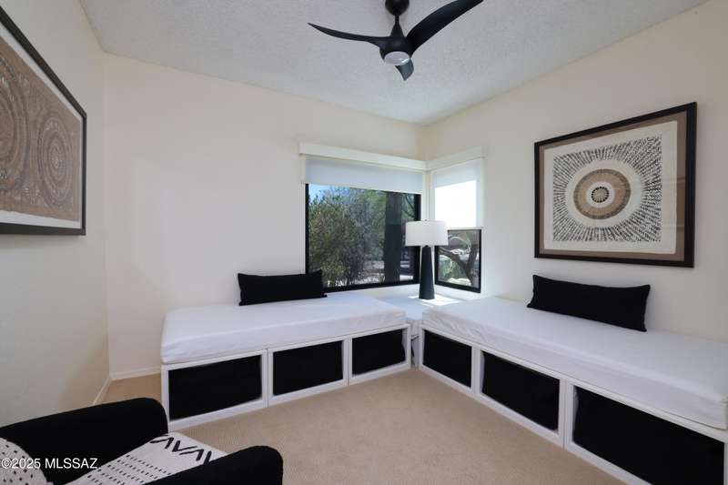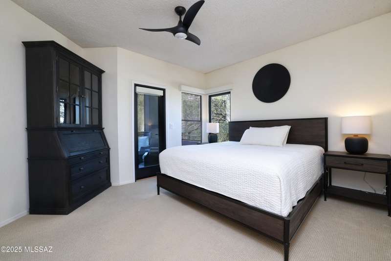 Resort style living at Ventana Canyon. This beautifully remodeled condo in highly desirable Ventana Canyon complex offers resort-style amenities: 2 pools, clubhouses and state of the art gym, all at the base of the Catalina Mtns w/private access to Ventana Canyon Trail. Featuring new Milgard double pane windows & doors, a custom kitchen by SW Kitchen & Bath, with glass-front cabinets, granite countertops, & Energy Star appliances (double oven with air fryer, refrigerator, & dishwasher). Additional Energy Star appliances include 2025 washer and dryer, water heater and 2018 HVAC. Enjoy front-door parking with no stairs and relax on your private, screened porch with wildlife crossing nearby. Live your dream in this serene desert oasis!