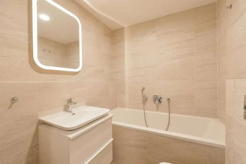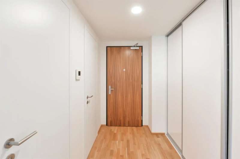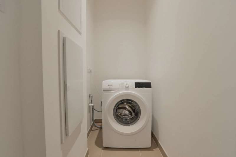 The balcony is equipped with lighting, and the windows also have electric external blinds. Throughout the apartment, lights are installed, and tracks for curtains are above the windows. The live-in kitchen is equipped with an Oresi brand kitchen unit with appliances. There are large custom-made storage spaces available in the hallway. The building's energy label is B - very economical.
