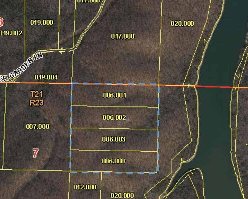 Unmatched privacy meets incredible value! This maturely wooded 38.84-acre property borders Dogwood Canyon Nature Park on three sides--an absolutely serene and secluded setting with breathtaking natural beauty. With Table Rock Lake just steps away, you'll enjoy peace, wildlife, and nature views in every direction.Owner indicates a fresh spring bubbling up on the property!An old logging road runs north to south, offering easy interior access across the land. The property is divided into four separate parcels (9.71 acres each) that can be purchased together or individually--perfect for investors, hunters, or families seeking multiple home sites.Located in the quaint Blue Eye area and within the Blue Eye School District, this land carries incredibly low taxes--just $21.68/year under A-1 Agricultural zoning. With no HOA, no restrictions, and no visible man-made structures, the possibilities are endless: build your private retreat, family compound, hunting cabin, or hobby farm.Enjoy a winter lake view now--and imagine the panoramic sights once partially cleared. As unrestricted as land gets in Stone County, this property allows residential, agricultural, and recreational use.Nearby amenities include:Dogwood Canyon Nature Park - 0.5 miPersimmon Hill Farm - 3.3 miKanakuk K-2 Kamp - 1 miChalets on Table Rock Lake - 0.3 miBlack Oak Mountain Amphitheater - 11 miThunder Ridge Nature Arena - 21 miSilver Dollar City - 25 miAt just $5,149 per acre, this is one of the best values in the Table Rock Lake region. Buy all four tracts and sell the extras--or keep it all as your private nature sanctuary!All you would have to do is complete the Access easement already started, and dirt work for ingress/egress driveway, then you will own about the best valued land around the lake!
