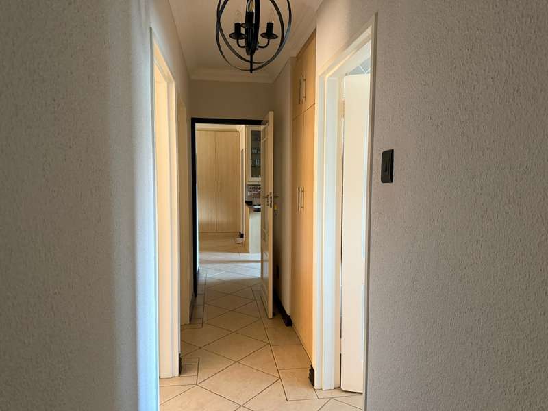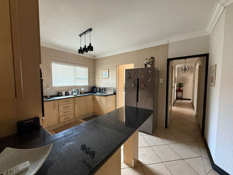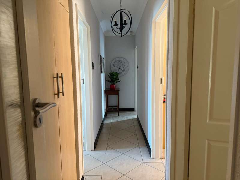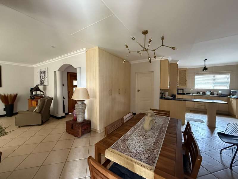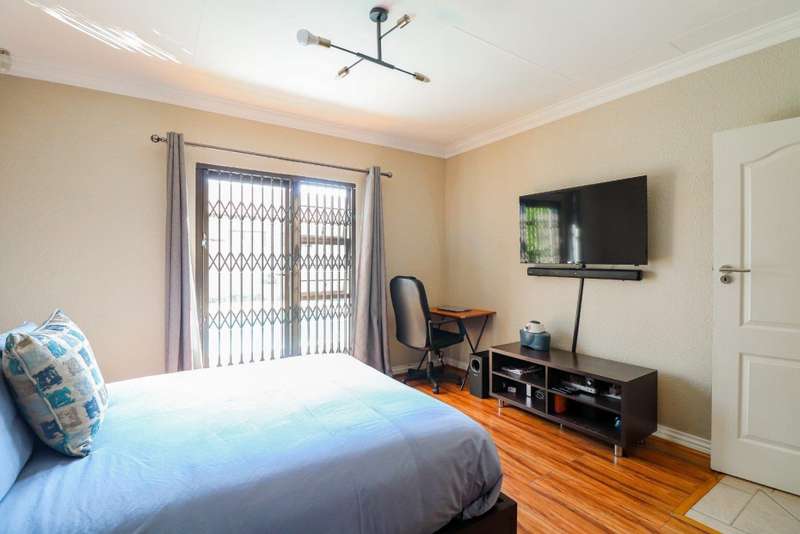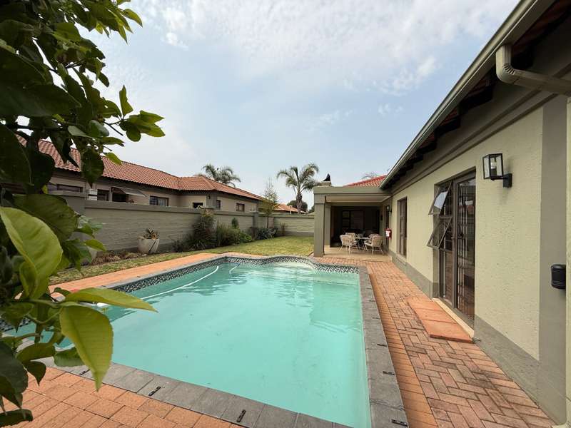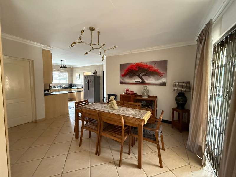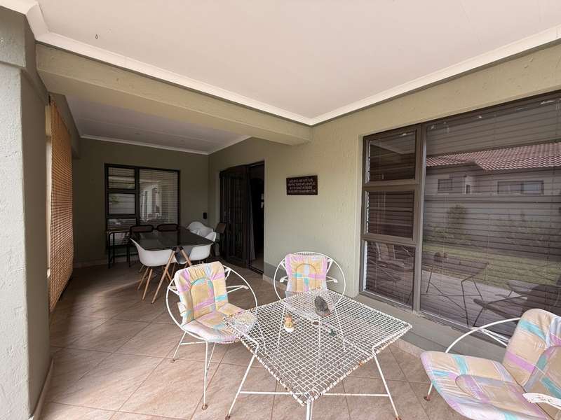 Modern, spacious open plan townhouse in upmarket, secure complex, popular part of the sought after neighbourhood, Flamwood. Swimming pool at the side, with yard enclosed for privacy. Low maintenance garden, irrigation system, lawn area alongside partially enclosed patio with built in braai. Ample storage inside the home with additional cupboards for storage in the garage. Already installed inverter system provide peace of mind, should the power go out. Tile flooring runs throughout the garage and the unit with exemption of the main bedroom with laminated wood flooring. A must see, for those seeking their forever home.
