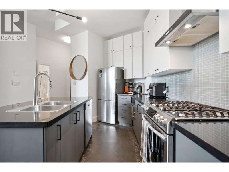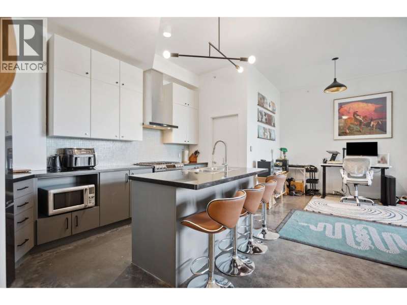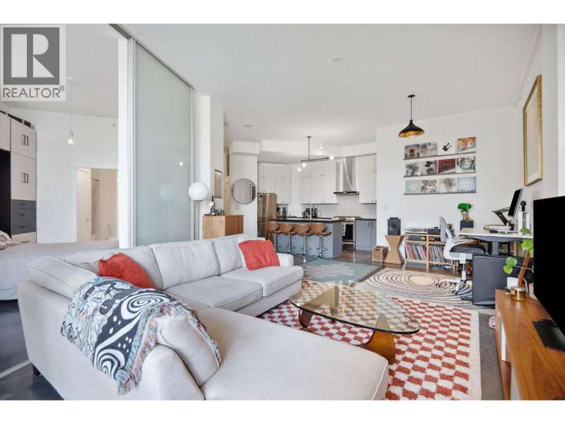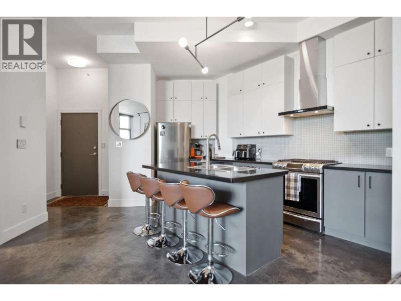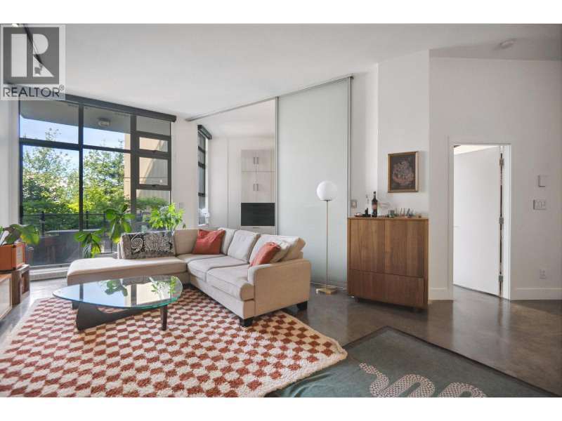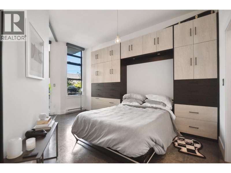 SLEEK 1 BEDROOM LOFT LIVING (CAN BE MADE INTO A 2 BEDROOM) IN MOUNT PLEASANT'S MOST DESIRABLE BUILDING! Welcome to the epitome of industrial loft living with polished concrete floors, and soaring ceilings. The kitchen features floor to ceiling cabinetry, updated stainless appliances, and a kitchen island with black granite counters, flowing into the separated living and dining spaces, framed and punctuated by floor to ceilings windows inviting quaint courtyard views. Appreciate the spacious covered patio, flat ceilings, roller blinds, updated lighting, and updated bathroom. The bedroom is roomy and inviting and features a fully integrated California Closet closet/storage system. Steps to the city's best restaurants, shopping and transit. ***OPEN HOUSE SAT SEPT 13, 2-4PM*** (id:58403)