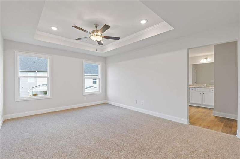 Lot 52 Weston Middle Unit- Ready late fall- Welcome to the Weston Floor Plan-a beautifully designed townhome offering timeless style and modern comfort. This all-brick front home delivers energy-efficient all-electric living paired with thoughtful design throughout. Step inside from the charming covered front porch into a warm and welcoming foyer. The open-concept main level seamlessly connects the kitchen, dining, and family room, creating the perfect space for entertaining or everyday living. Enjoy smooth surface flooring, a ceiling fan in the family room, and access to a covered rear patio-ideal for relaxing, container gardening, or creating your own peaceful retreat. A convenient powder room and two-car garage complete the main level. Upstairs, you'll find three spacious bedrooms and two full baths, including the standout Weston primary suite. Enjoy a tray ceiling, ceiling fan, and an oversized walk-in closet that connects directly to the laundry room for added ease. The primary bath features a double vanity and a window for beautiful natural light each morning. Modern features, smart layout, and stylish details make the Weston a perfect place to call home. Don't miss your chance to tour this brand-new floor plan in one of Dacula's most exciting communities!