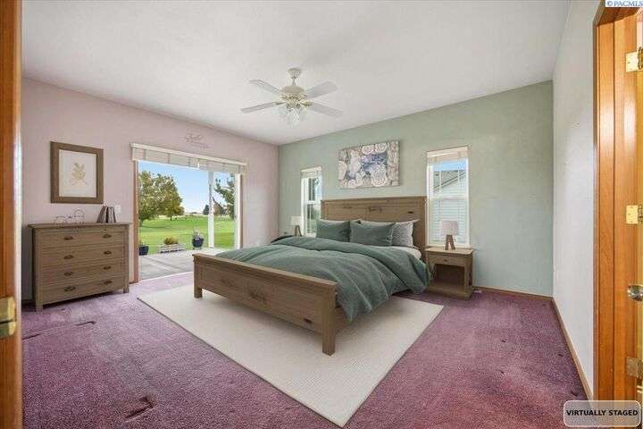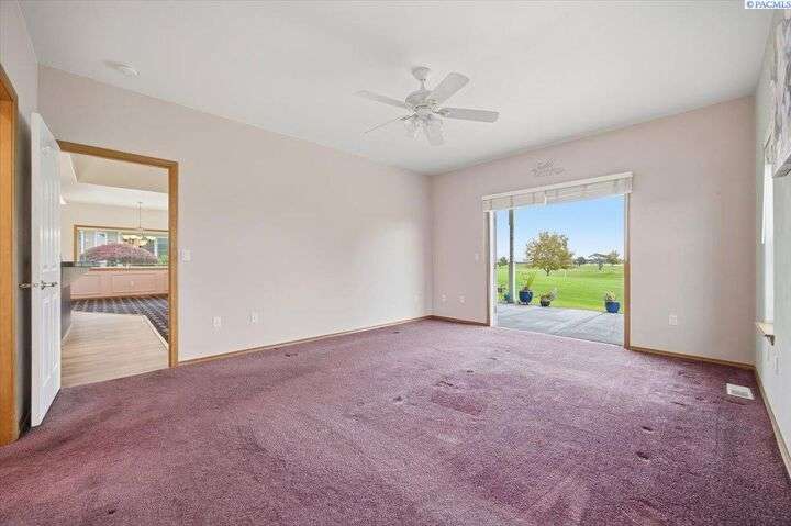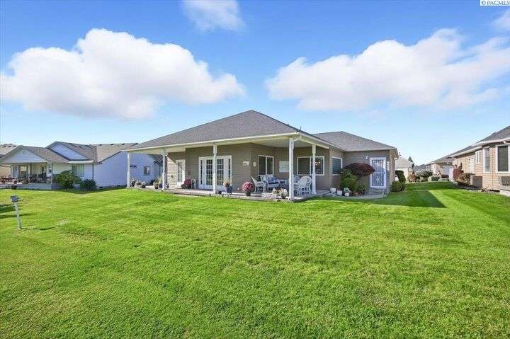MLS# 288662 Custom-built rambler located in the desirable Sun Willows Golf Community! Such cute curb appeal! This beautiful home offers two dual master suites, including one with a private exterior entrance that’s perfect for a mother-in-law quarter also ADU complete with its own bedroom, family room and bathroom featuring a shower, vanity and sink. The open-concept layout features soaring ceilings in the living room, a cozy gas fireplace, and french doors leading to a full-length patio overlooking the 6th fairway of the golf course. DON'T MISS THOSE VIEWS! The kitchen is designed for entertaining with ample cabinets, tile counters, a breakfast bar, oven range, microwave, and pantry, all flowing seamlessly into the dining and living spaces. The new LVP flooring adds warmth and durability throughout. The laundry room including sink conveniently connects to the spacious three-car garage. The primary suite offers patio access with golf course views, dual sinks, tile counters, ample cabinets space, and both a walk-in closet and additional storage closet. This exceptional home also features a newer water heater, dual furnaces, and dual air conditioning units for comfort year-round.Don't miss seeing this amazing community home.
