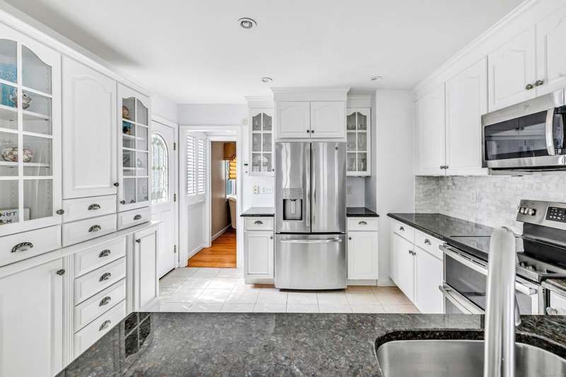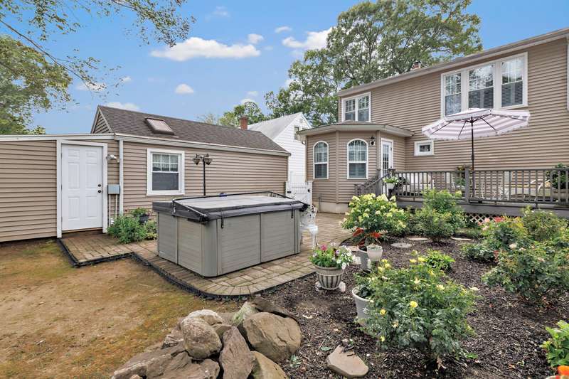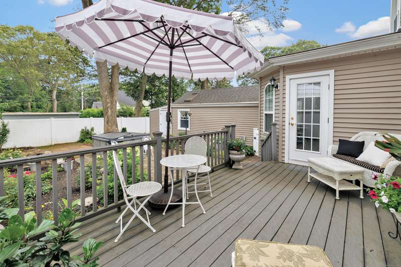 "Here it is!". A beautiful, meticulously maintained home nestled in the highly desirable Rivercliff neighborhood of Milford, and only a 3 minute drive to Walnut Beach. This spacious cape features a beautiful eat-in kitchen with newer stainless steel appliances, tile flooring, and a beautiful lighted built-in hutch. The living room and bedroom have pristine hardwood floors. There is a full bath and spacious shower stall on the first floor. The second floor has a large bedroom with a walk in closet. Relax in the jet tub in the nearby bathroom .The lower level boasts a finished basement with a wine cooler. FPL is yours to enjoy on a cold winter's night. The outside features a TREX Deck and a well maintained hot tub with a gorgeous flower bed to enjoy. An impressive garage equipped with A/C and heat (transformed into a workout gym) to keep you comfortable while working out. An underground sprinkler system is installed in the front yard to water the new grass that was planted in the spring